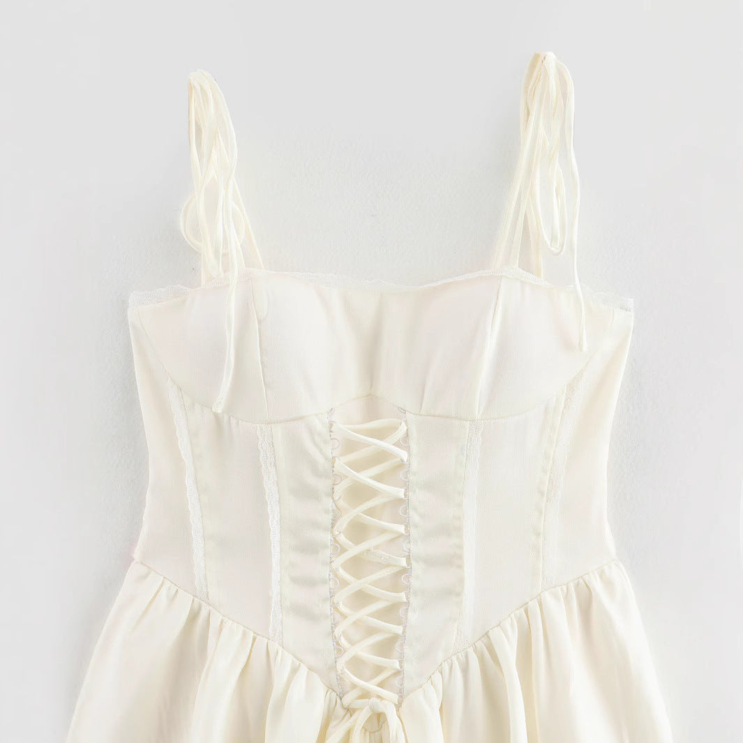 Denna klänning har en A-Line silhuett som smickrar figuren och ger en avslappnad men stilren look. Den enfärgade designen gör den lätt att styla för olika tillfällen, från strandbesök till sommarfester.