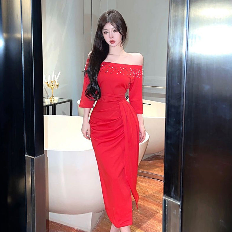 Damklänning Axelbandslös Kort Slits Polyester