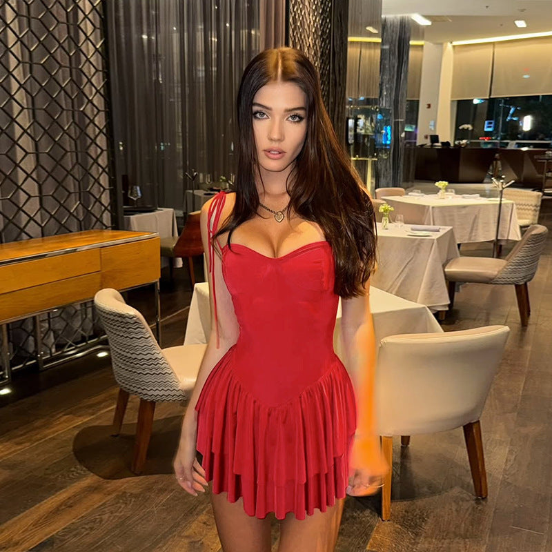 Damklänning Lätt Sommarstil Överlappande Top Voluminös Kjol Mjuk Tyg