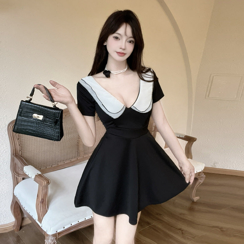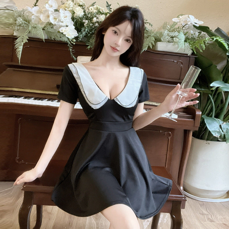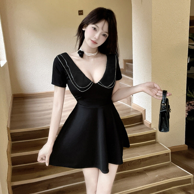 Damklänning Mini Djup V-Krage Polyester Svängande Stil