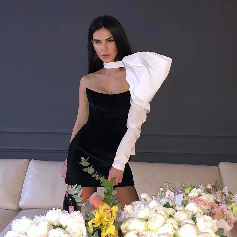 Upplev en perfekt kombination av stil och komfort med denna mini klänning. Den lyxiga sammeten smiter åt runt figuren och ger en känsla av elegans och självsäkerhet.