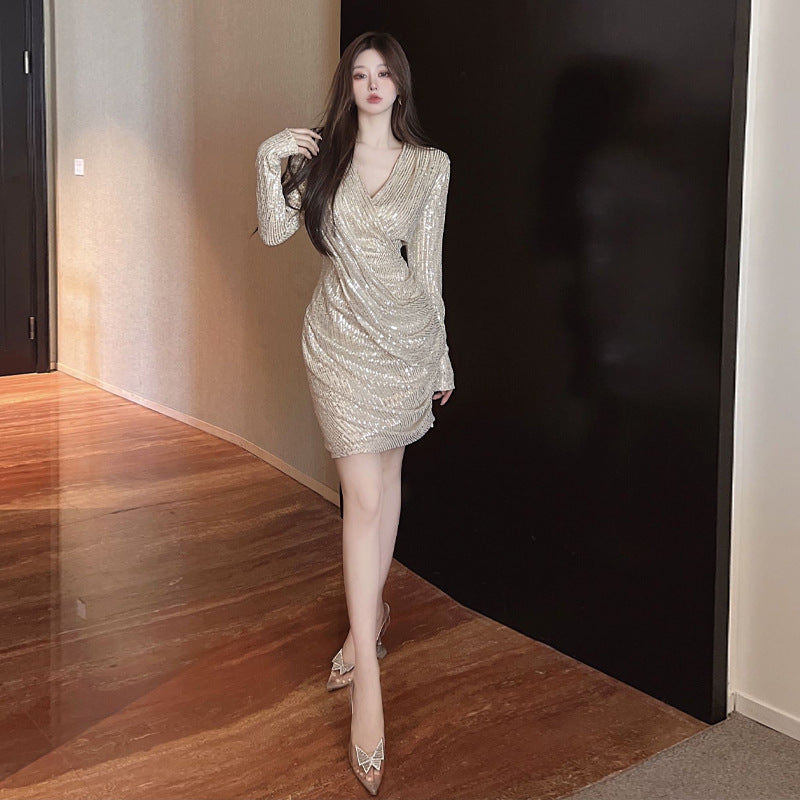 Denna klänning är perfekt för att fånga uppmärksamhet och skapa en minnesvärd look. Med sin oregelbundna design och glittrande paljetter kommer du att känna dig både elegant och självsäker.