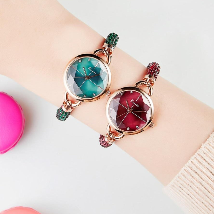 Damklocka Rund med Blommiga Motiv och Justerbart Armband i Legering