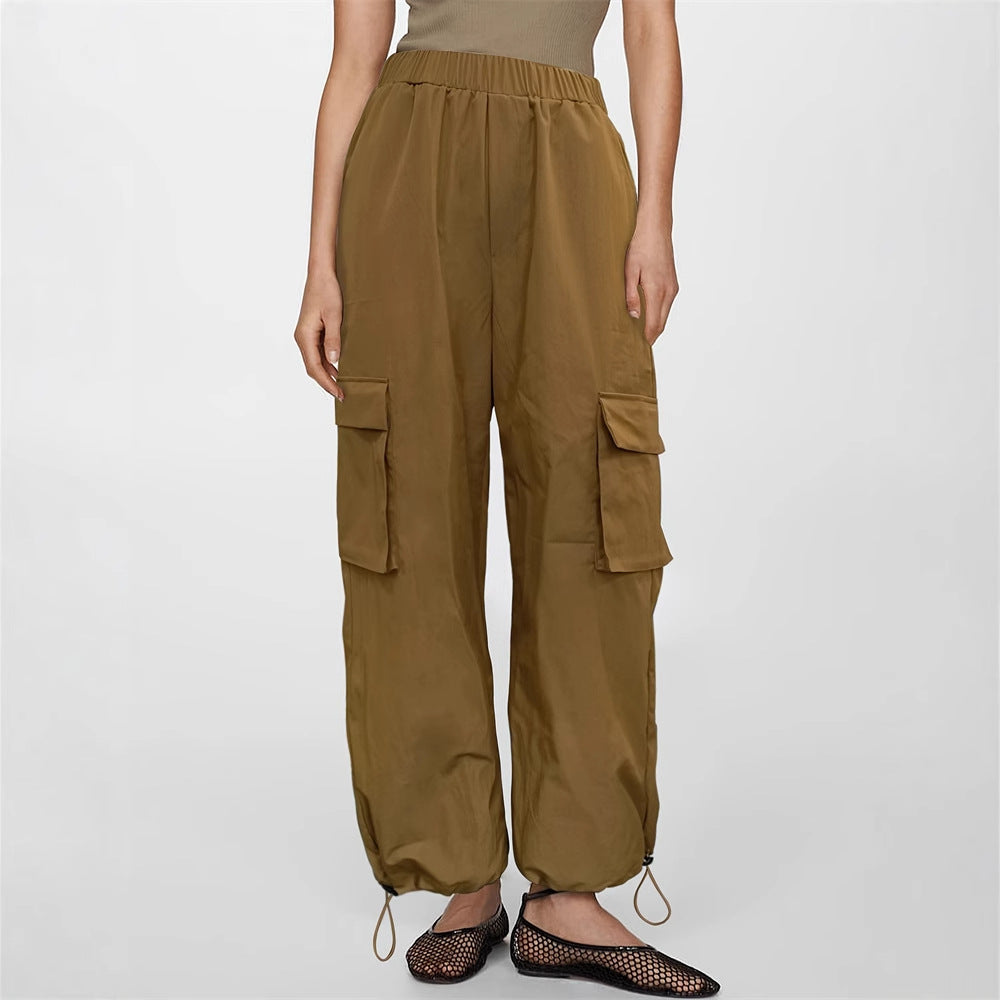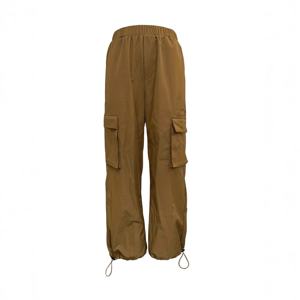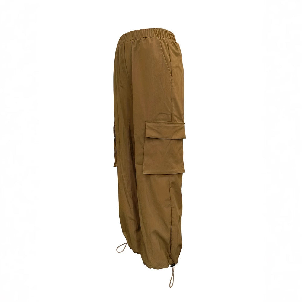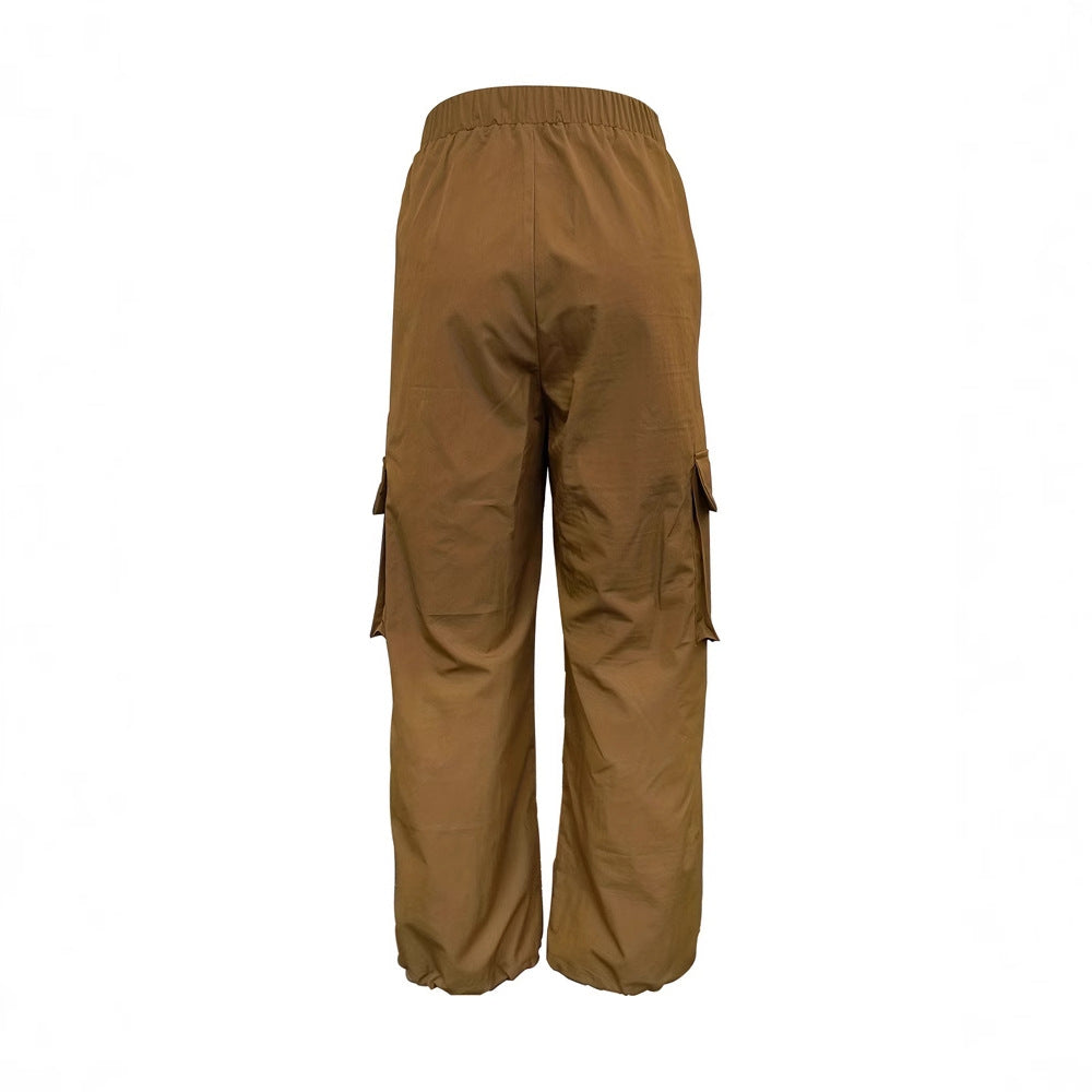 Med en hög midja och ett elastiskt band smickrar dessa byxor din figur och ger en perfekt passform. De praktiska sidfickorna erbjuder gott om utrymme för dina nödvändigheter, vilket gör dem idealiska för både vardag och fritid.