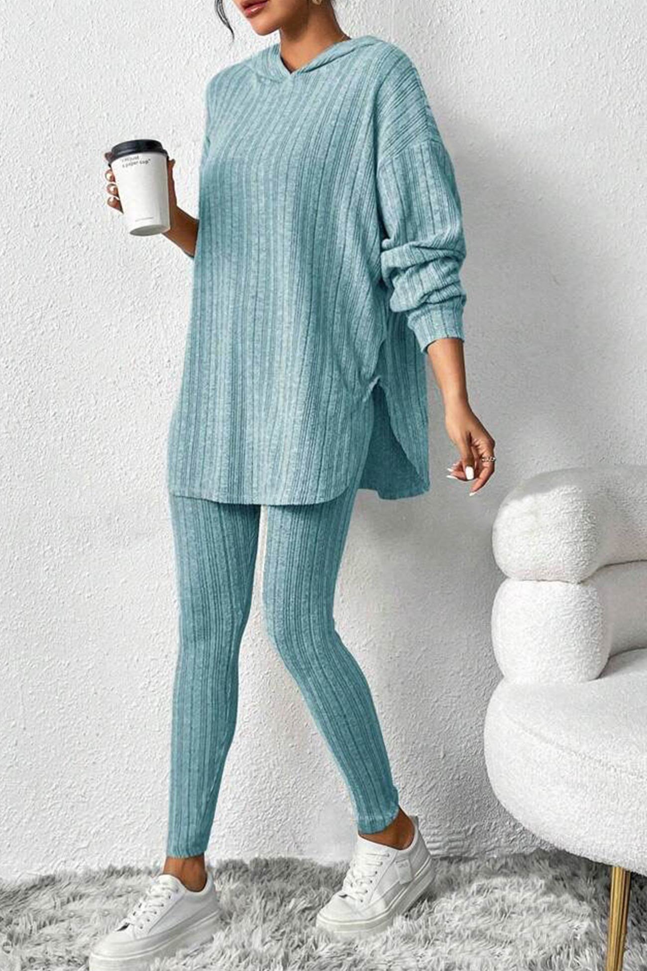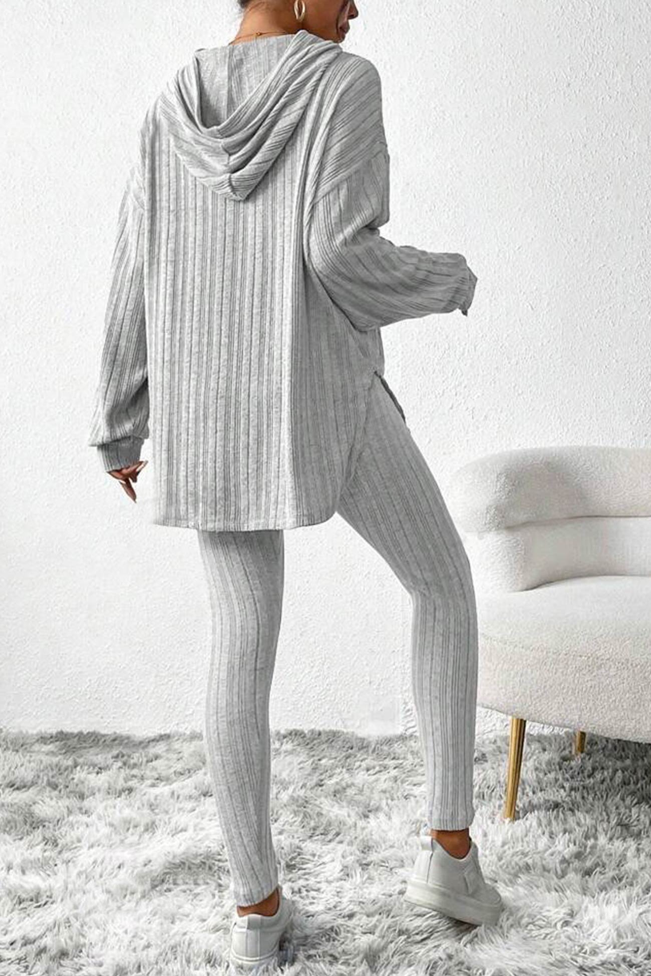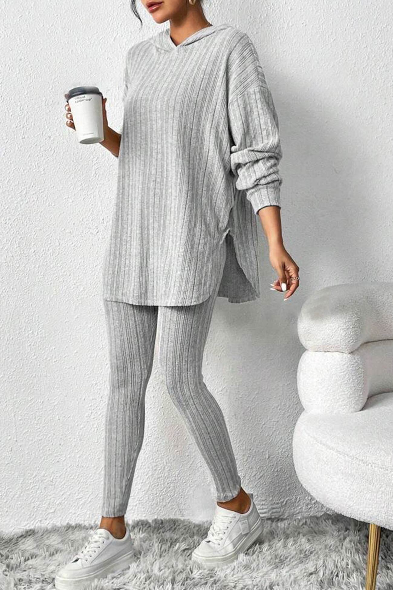 Damleggings med Huva Ribbade Detaljer Hållbar Bomull