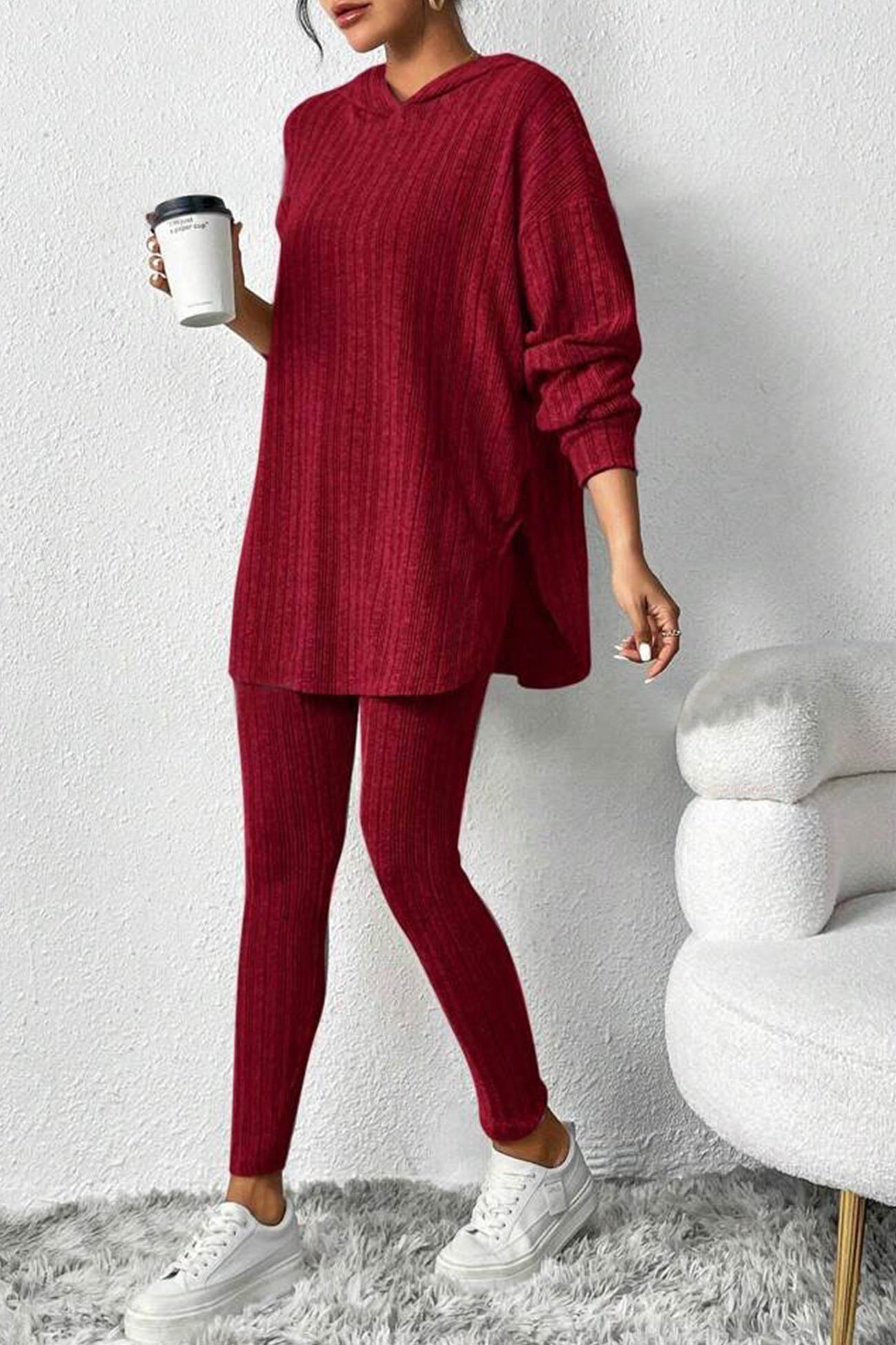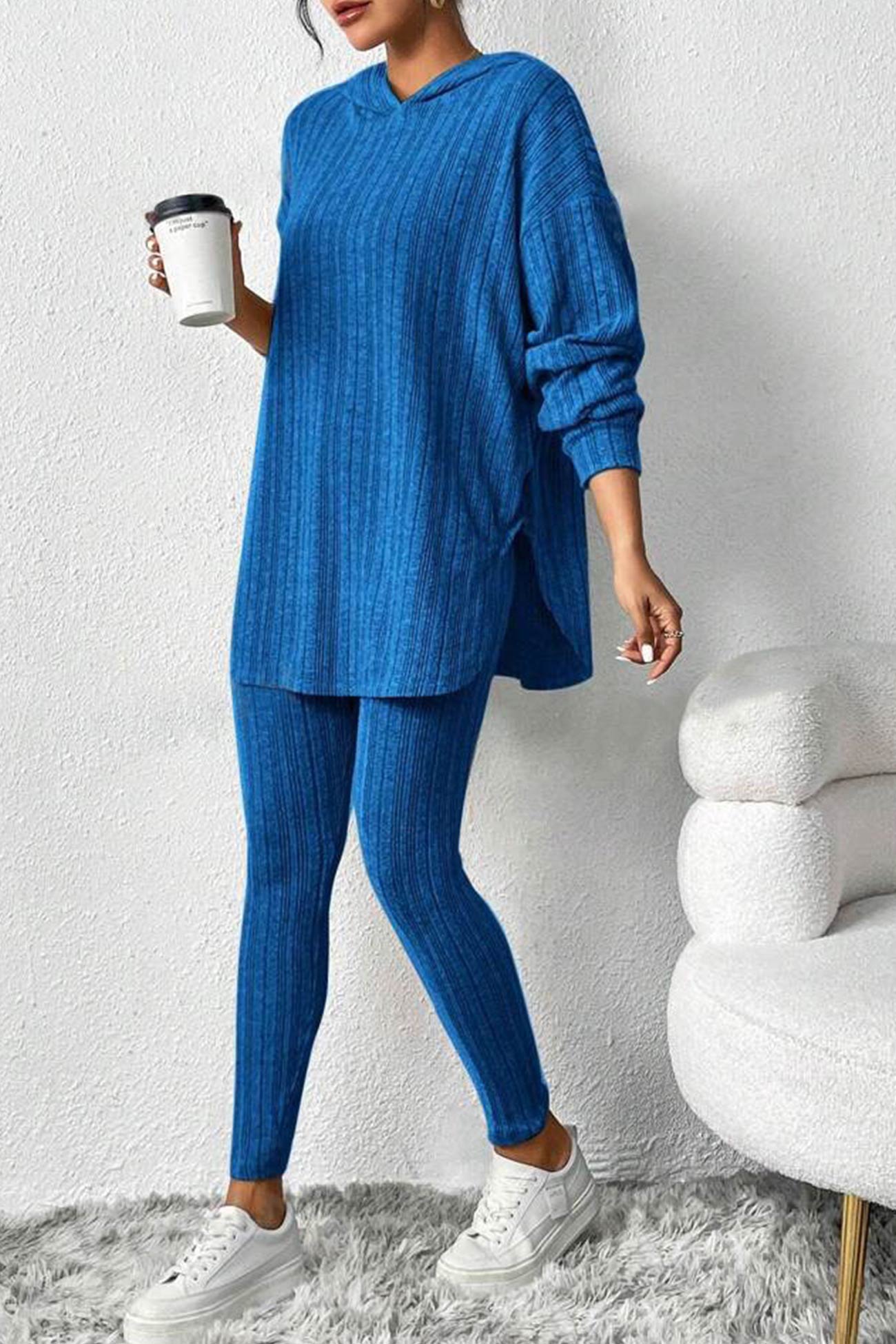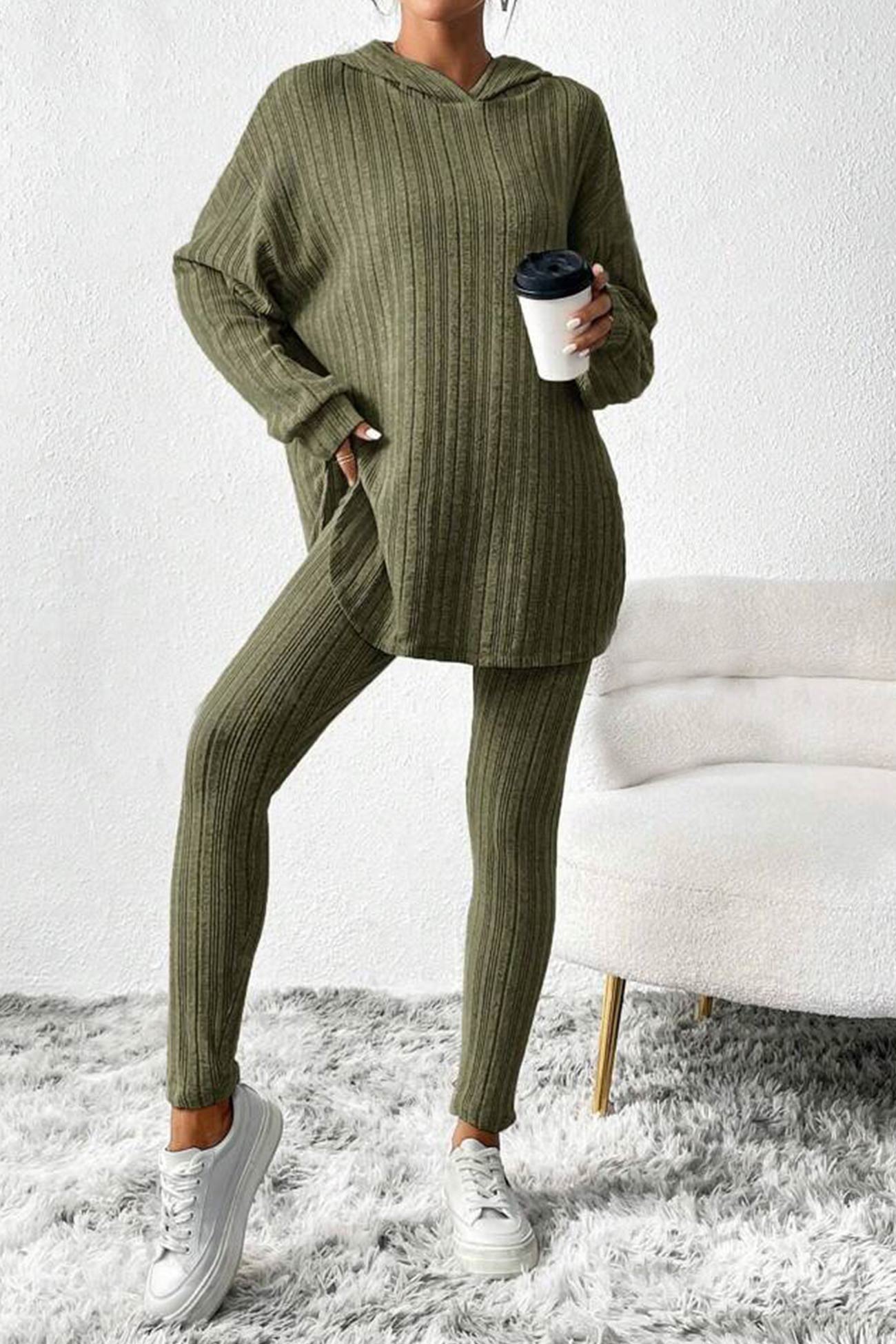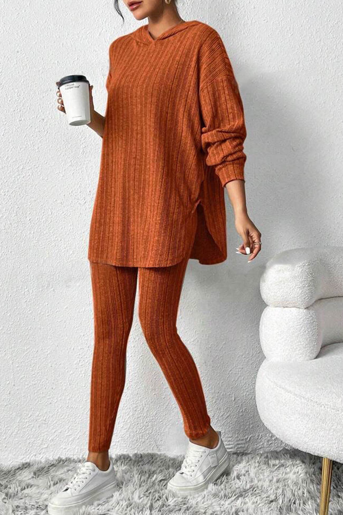 Damleggings med Huva Ribbade Detaljer Hållbar Bomull