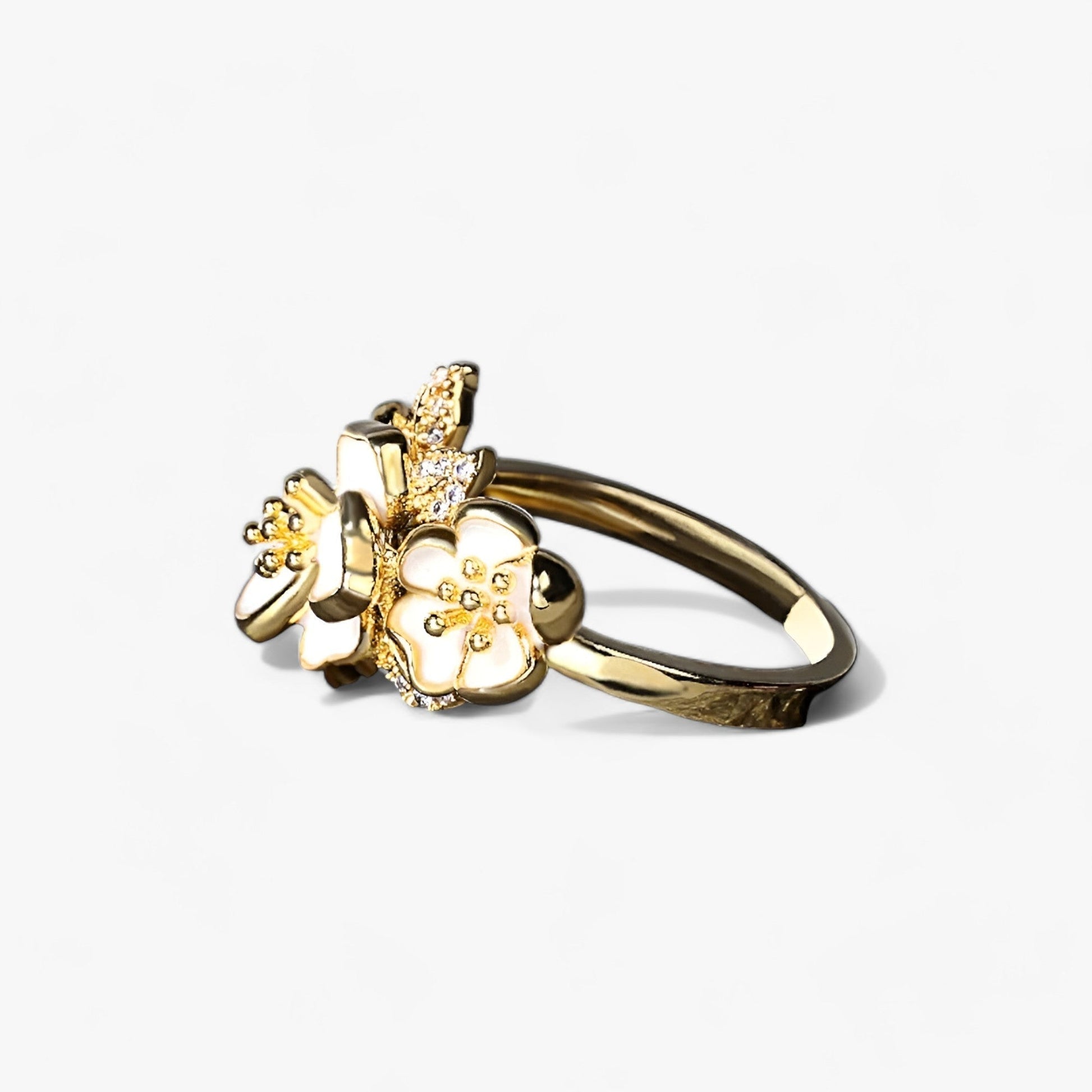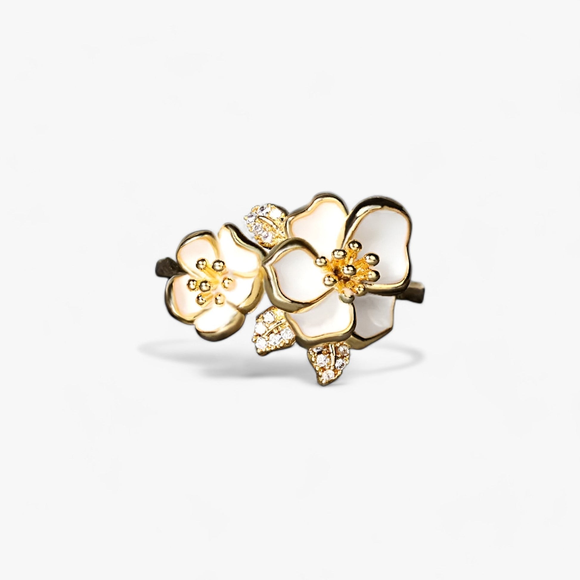Upplev skönheten i vår damring med vit blommig design, som ger en känsla av elegans och stil. Denna ring är perfekt för både vardagligt bruk och speciella tillfällen, vilket gör den till ett oumbärligt smycke i din kollektion.