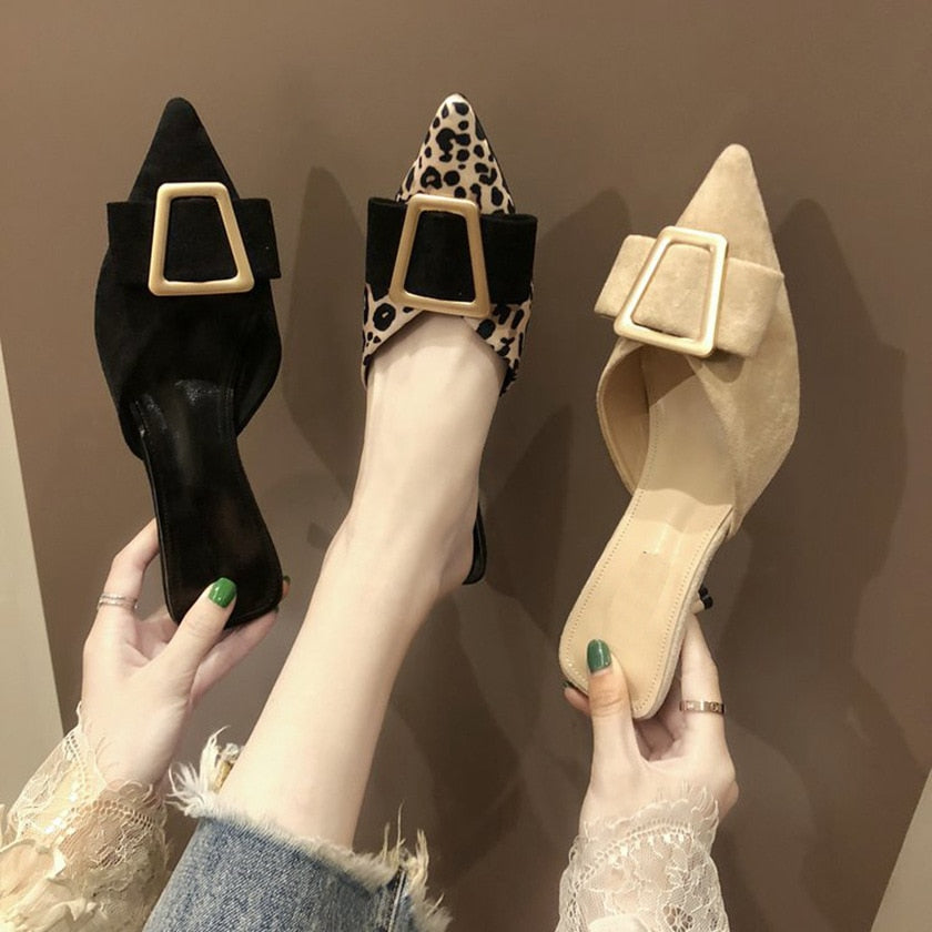 Upplev en perfekt kombination av stil och komfort med dessa charmiga mulskor. Med sitt unika djurmönster och metalldekorationer kommer du att känna dig både elegant och avslappnad.
