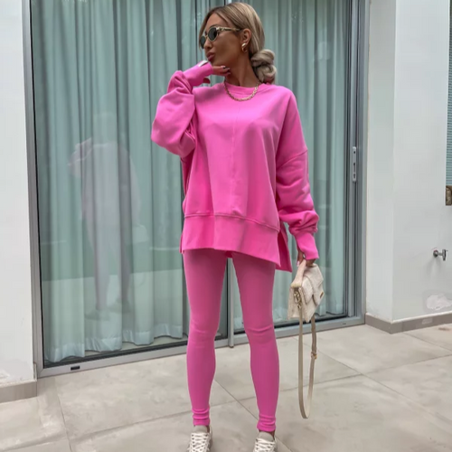 Upplev oöverträffad komfort med vår tvådelade uppsättning, perfekt för avslappnade dagar och fritidsaktiviteter. Denna ensemble ger en känsla av stil och välbefinnande, oavsett tillfälle.