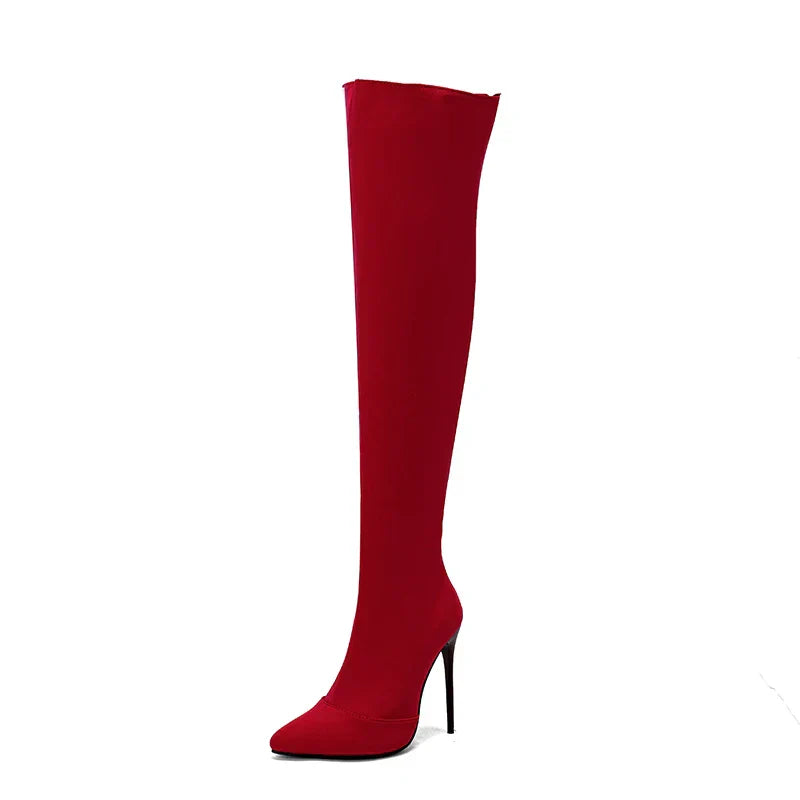 Damskor Lårstövlar Knähög Satin Hög Klack
