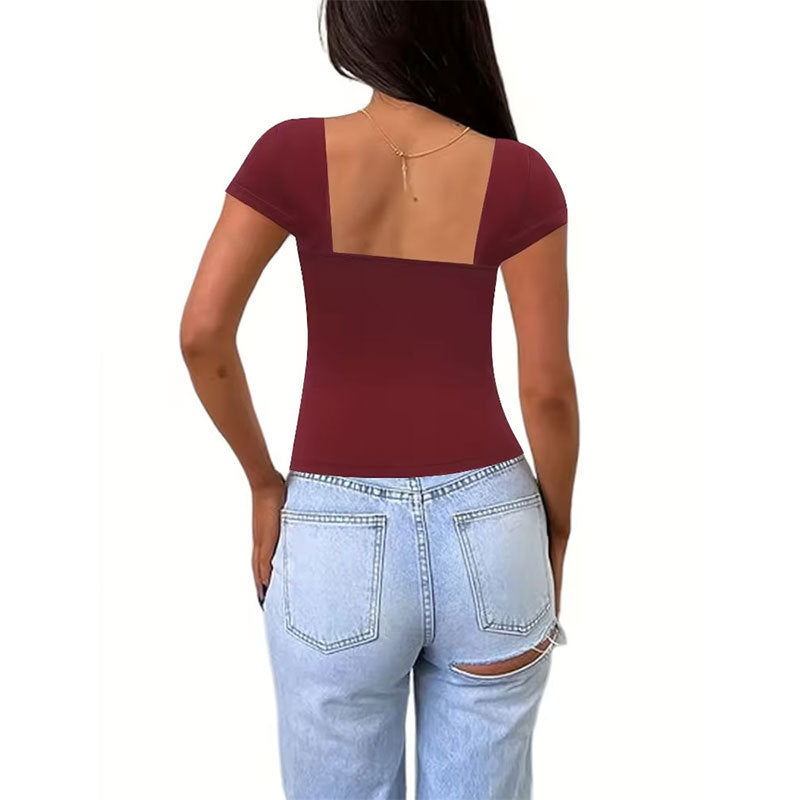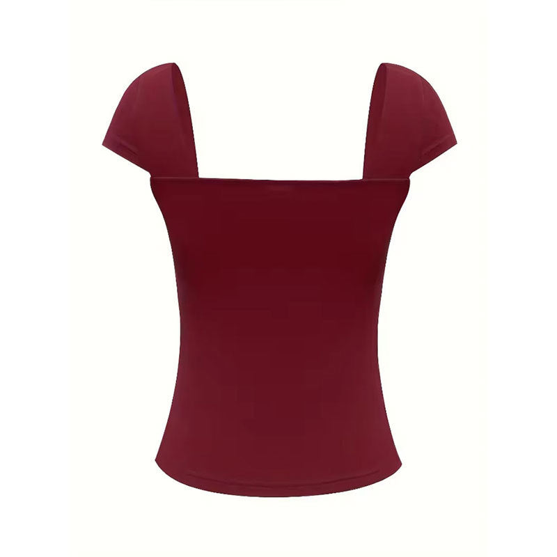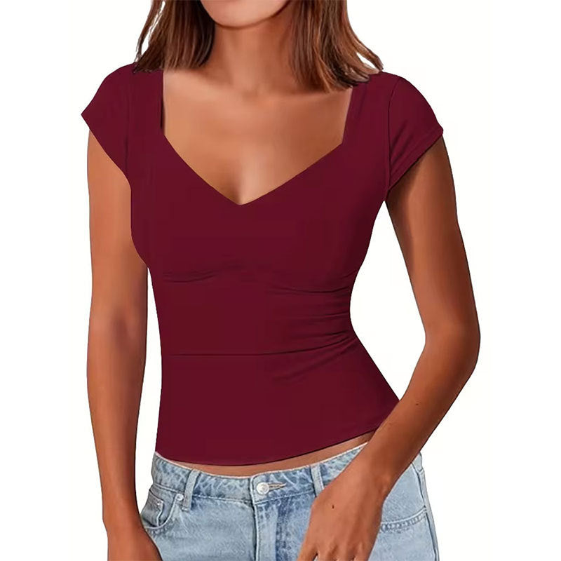 Med sitt unika snitt och figurnära design är denna topp idealisk för både vardag och festliga tillfällen. Den är lätt att styla och passar utmärkt med olika kläder, vilket gör den till ett mångsidigt tillskott i din garderob.