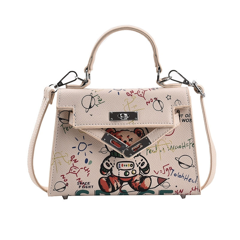 Denna handväska kombinerar stil och funktionalitet, vilket gör den till ett perfekt komplement till din vardagslook. Med sin lekfulla design och praktiska handtag kommer du att känna dig både söt och trendig när du bär den.