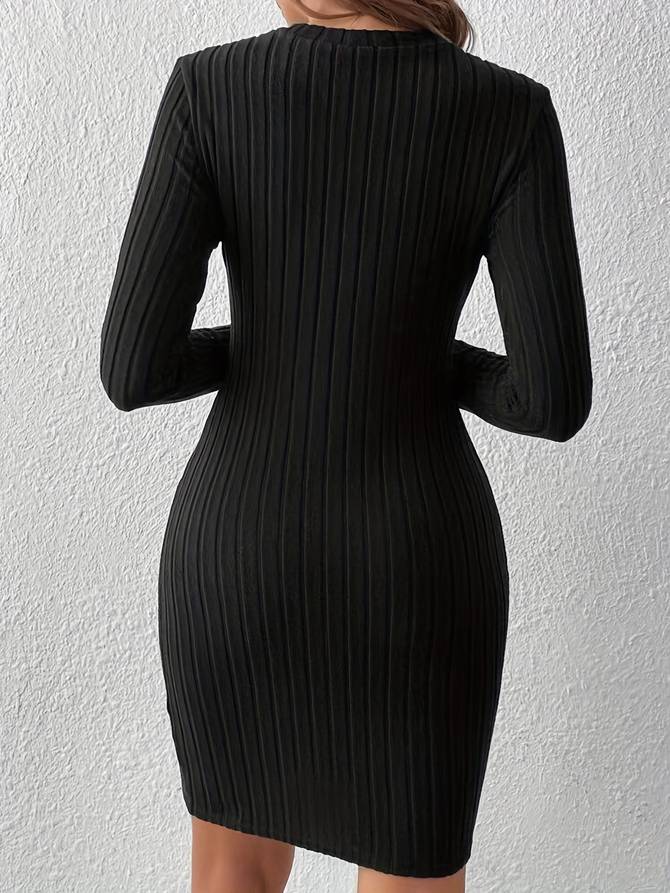 Fina Dam Klänningar Ribbad Med Knappdetaljer Tätsittande Mjukt Tyg