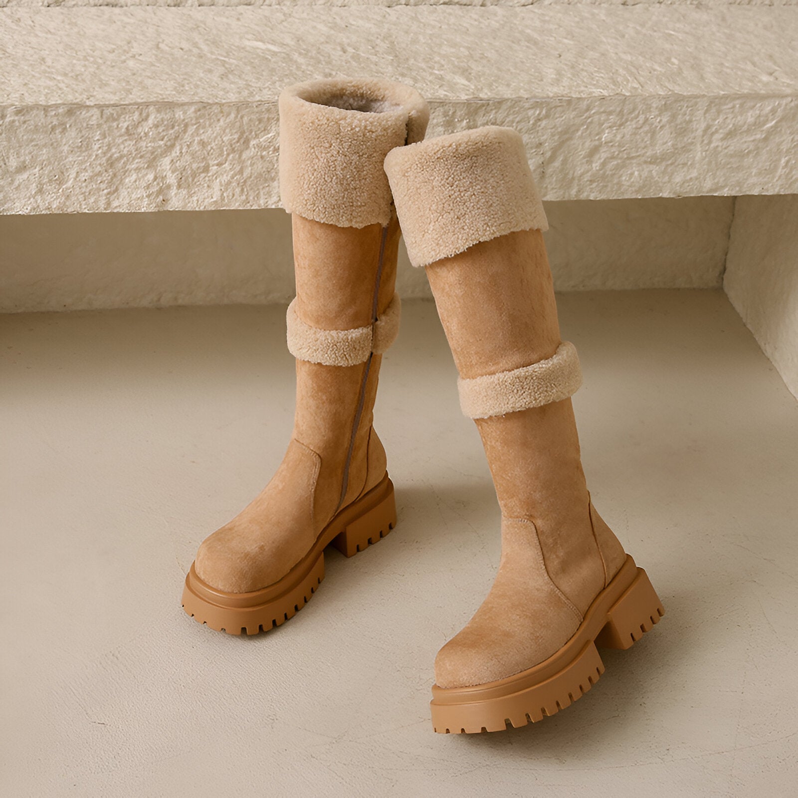 Upplev en ny nivå av komfort och stil med dessa kalvhöga vinterstövlar. Tänk dig att glida in i dem på en kall vintermorgon och känna det mjuka fodret som omfamnar dina ben.