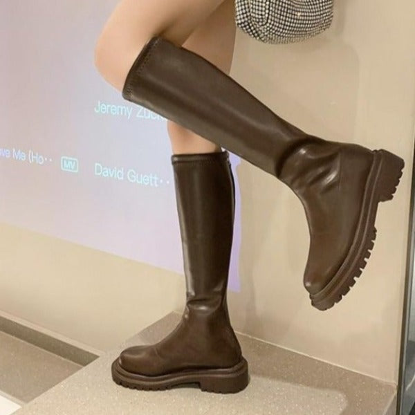 Dessa stövlar är utformade med en robust sula som ger ett bra grepp, vilket gör dem idealiska för vinterpromenader. Den fashionabla blockklacken och det praktiska blixtlåset på baksidan ger en modern touch som gör att du kan kombinera dem med olika outfits.