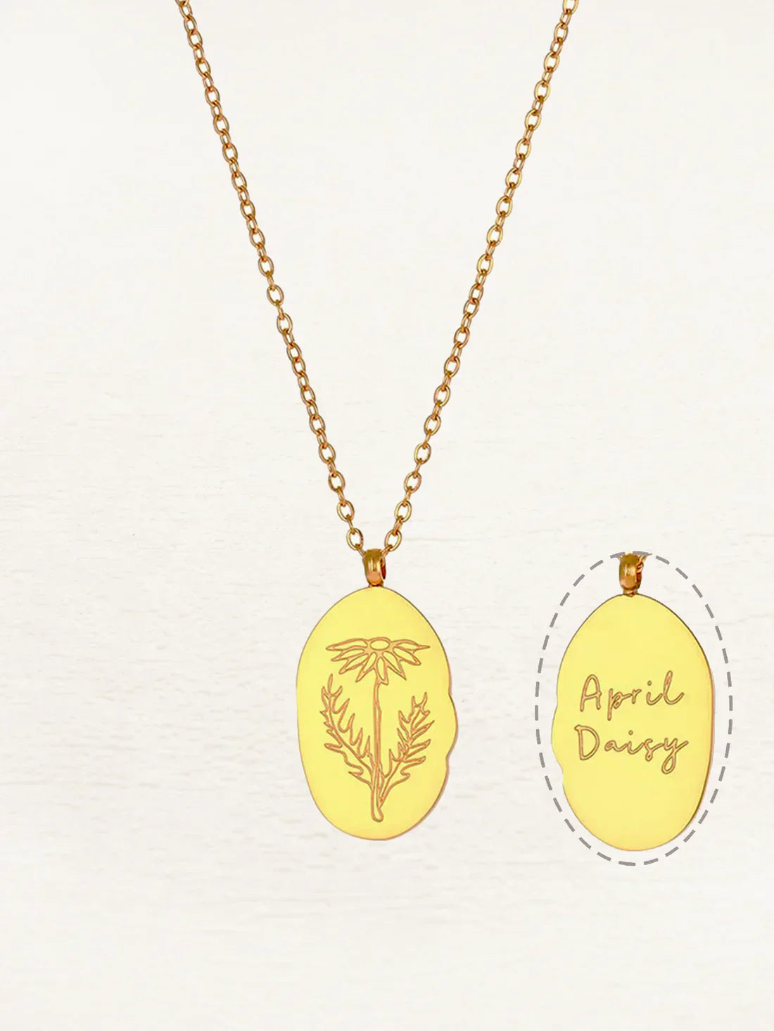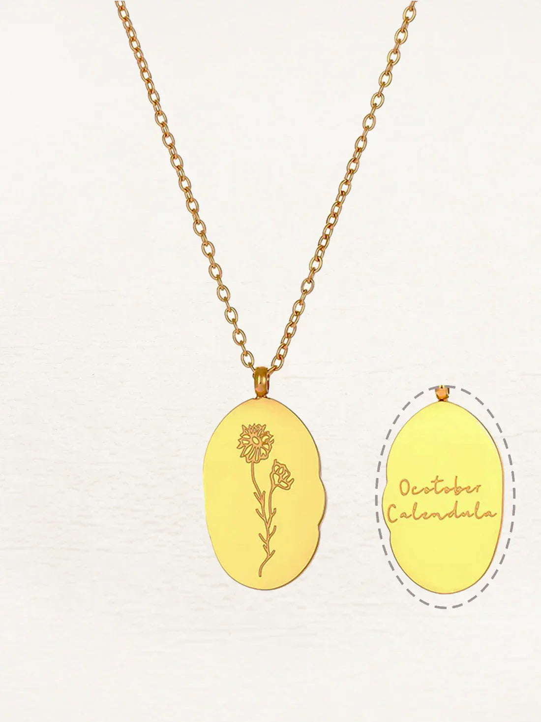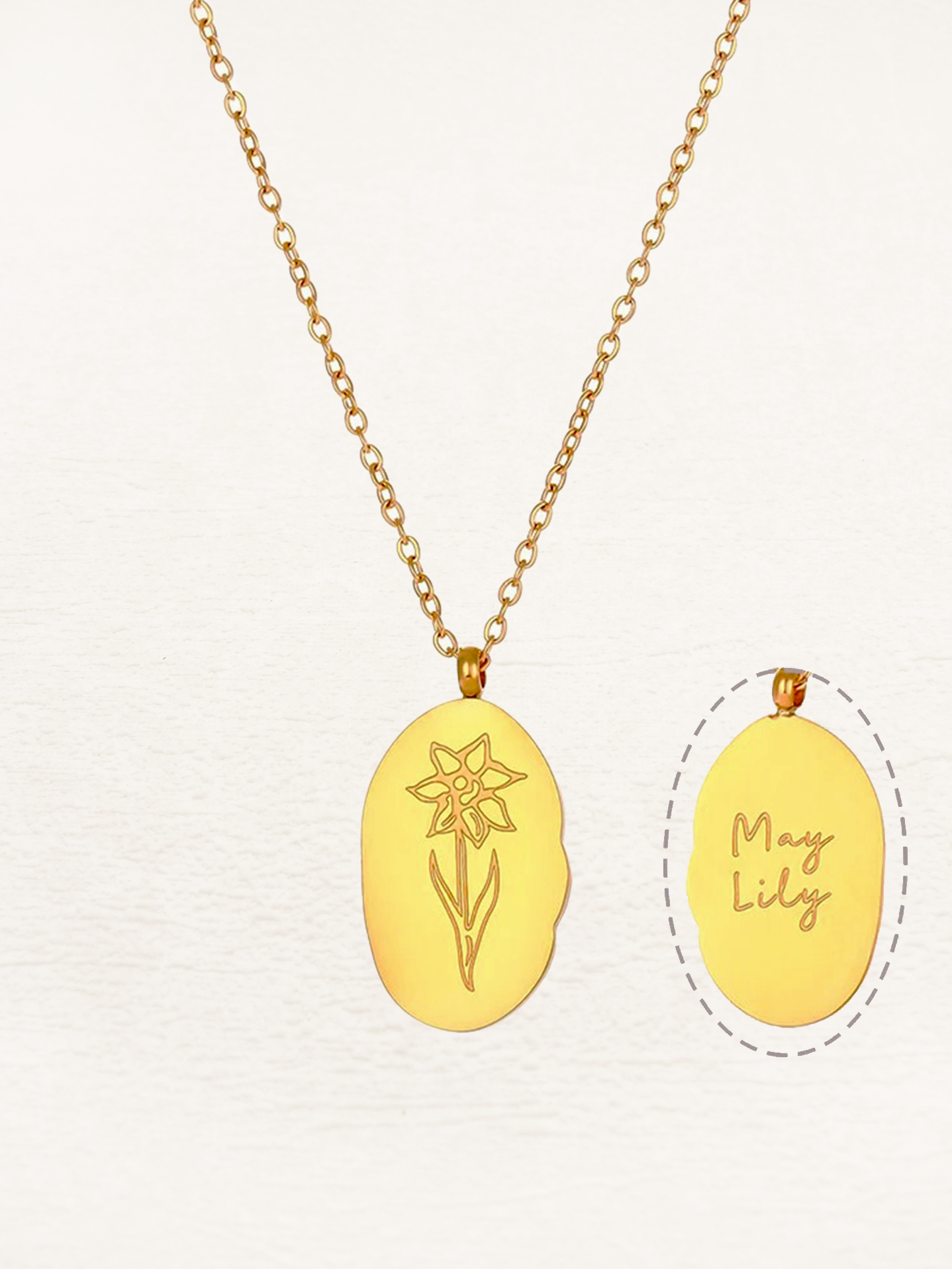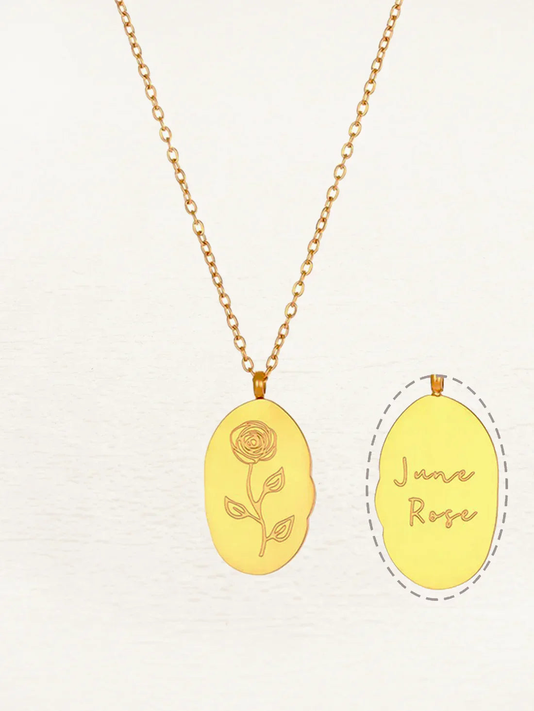 Designen av detta halsband är inspirerad av livets cykler och naturens skönhet. Den ovala formen pryds av ett konstnärligt blommönster som symboliserar blomstring och nya början, vilket gör det till ett utmärkt val för både vardag och festliga tillfällen.