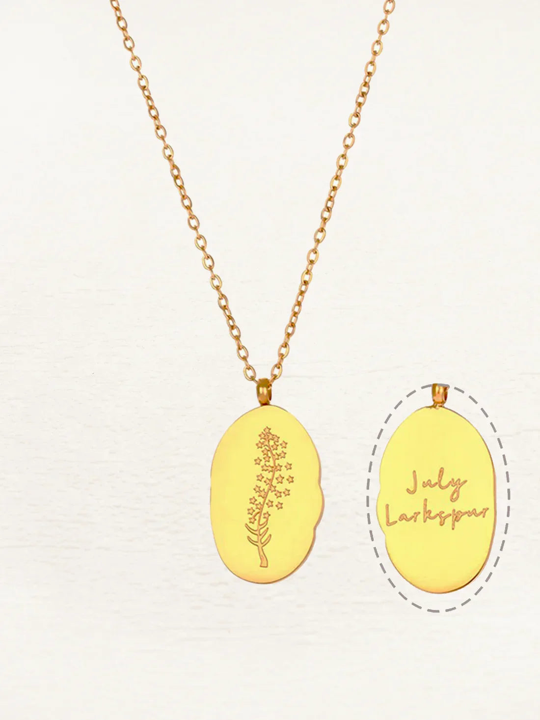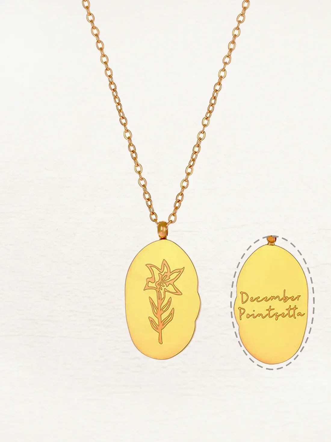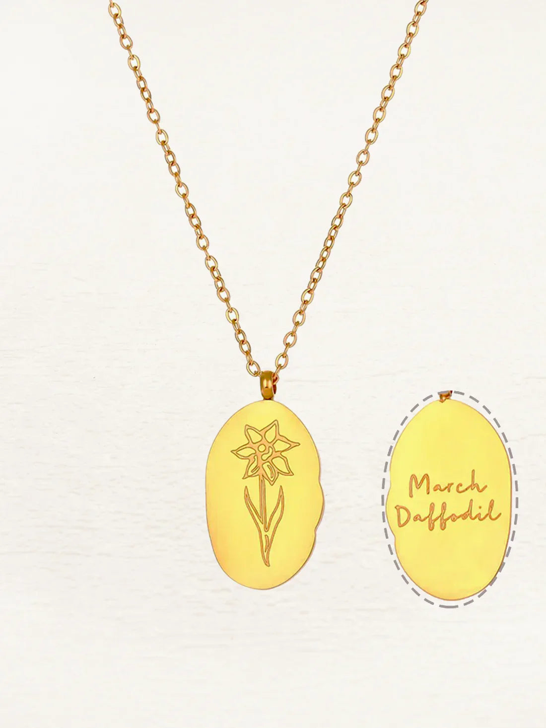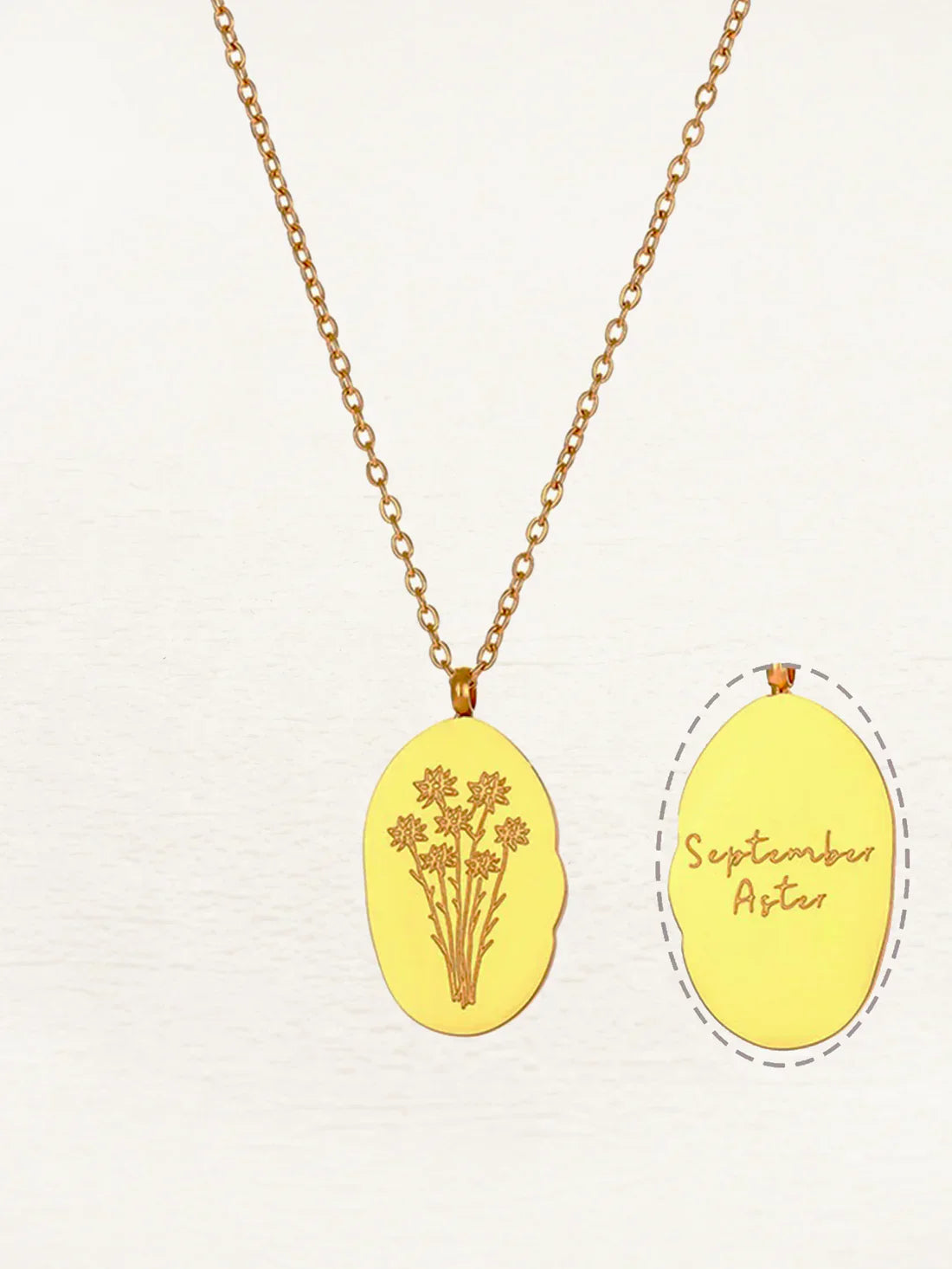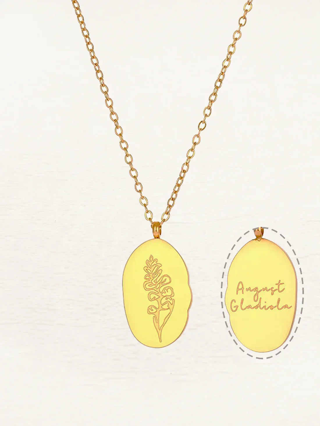 Designen av detta halsband är inspirerad av livets cykler och naturens skönhet. Den ovala formen pryds av ett konstnärligt blommönster som symboliserar blomstring och nya början, vilket gör det till ett utmärkt val för både vardag och festliga tillfällen.