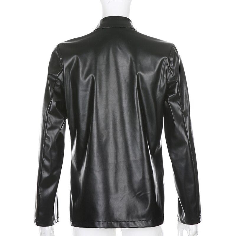 Upplev en perfekt kombination av stil och komfort med denna PU-läderblazer. Den är designad för att ge dig en självsäker look oavsett tillfälle.