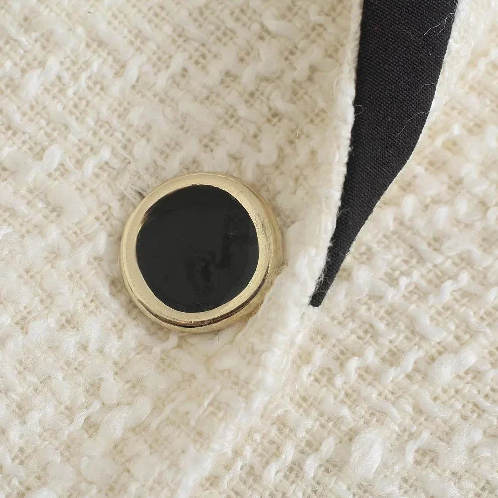 Denna blazer har en modern design med dubbla stängningar som ger en sofistikerad touch. Den raka snittet och vikbara kragen gör den mångsidig och lätt att styla för både formella och avslappnade sammanhang.
