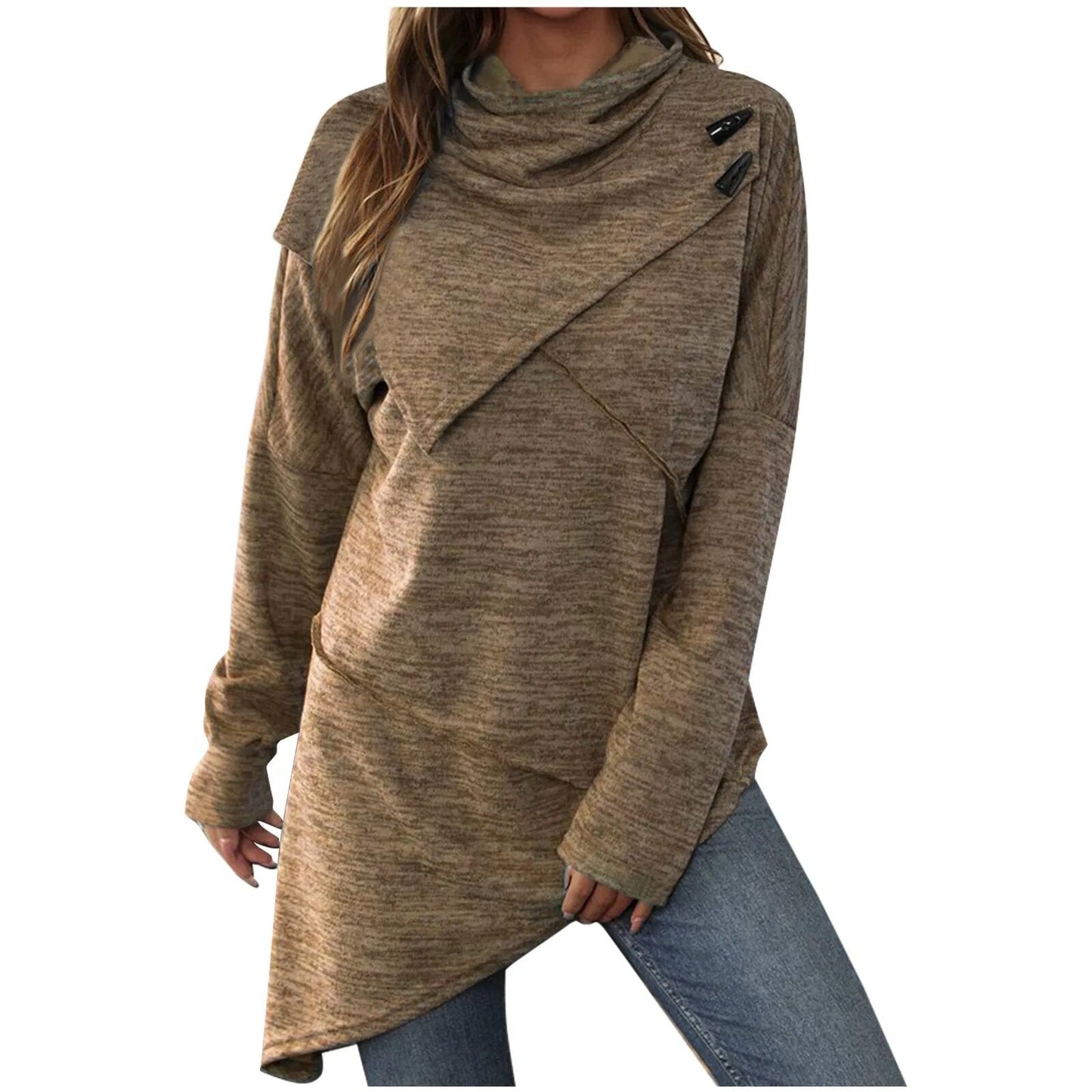 Tröjan har en cirkulär halsringning och en oregelbunden nederkant som ger en modern touch. Den är mångsidig nog att bäras vid olika tillfällen, oavsett om du är hemma eller på språng.