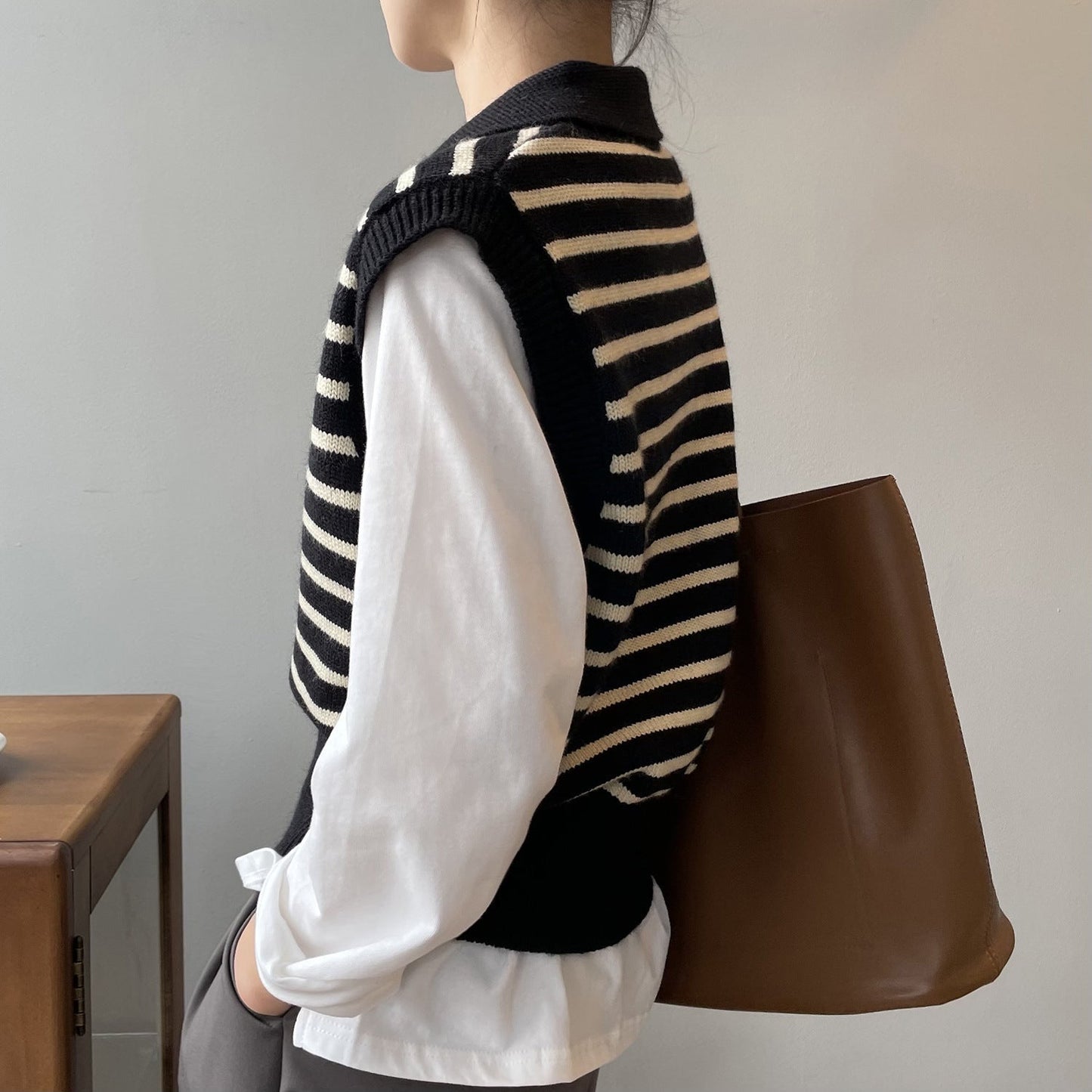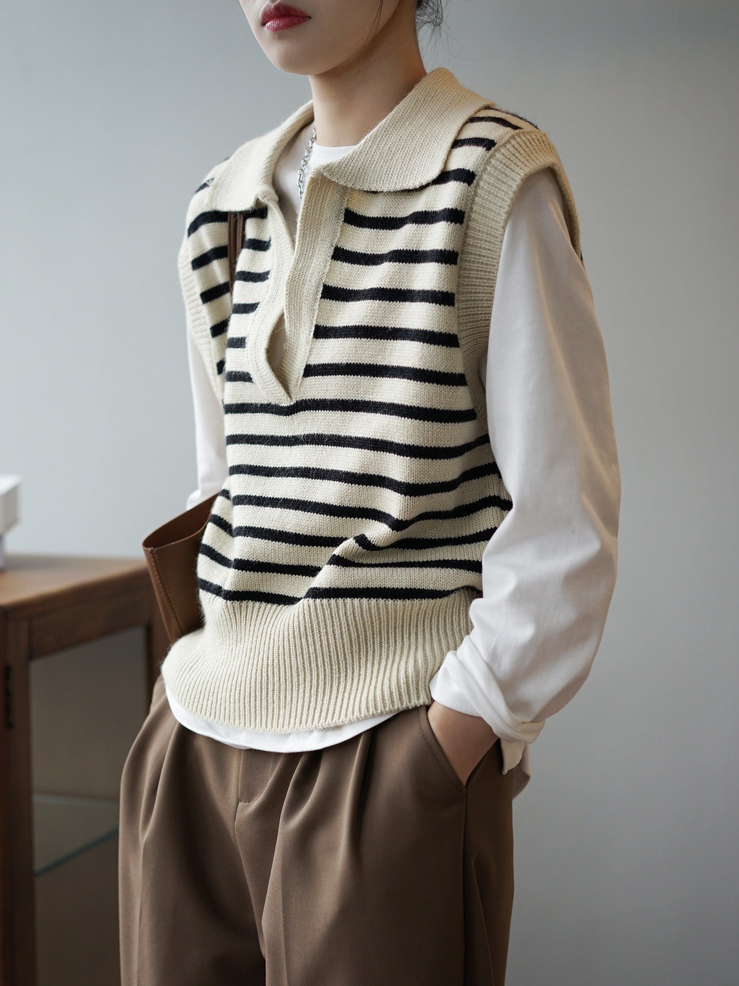 Vår väst är designad med fokus på både funktion och stil, vilket gör den idealisk för både vardag och mer formella tillfällen. Den randiga designen ger en modern touch, medan det mjuka materialet säkerställer att du håller dig varm och bekväm.
