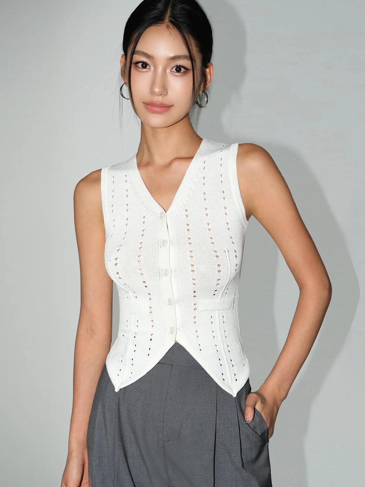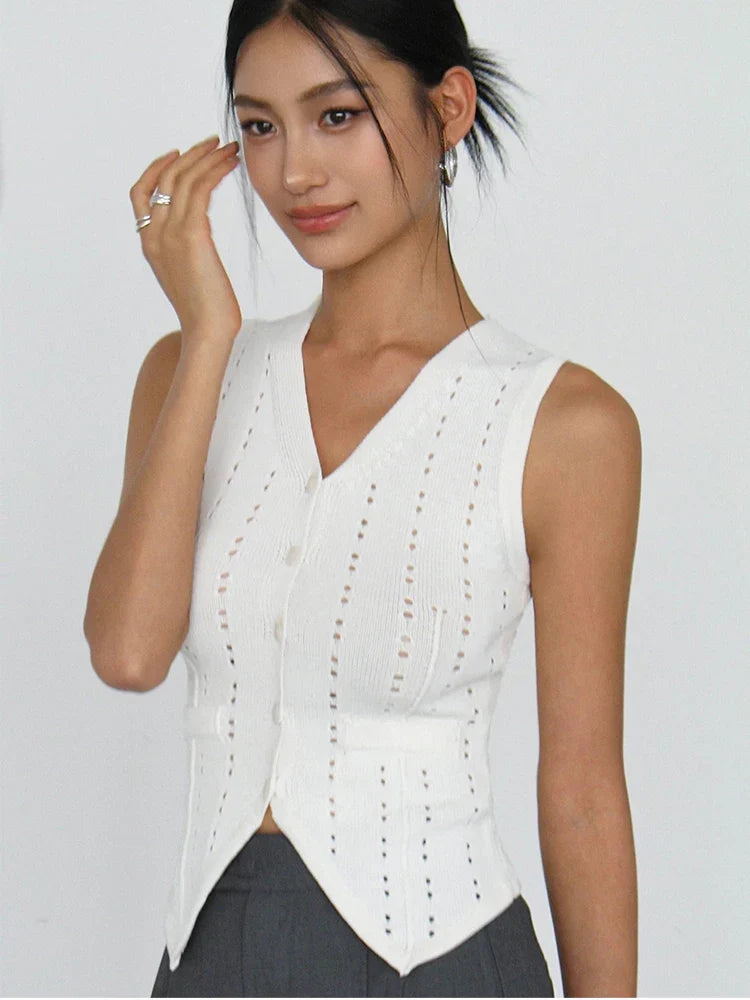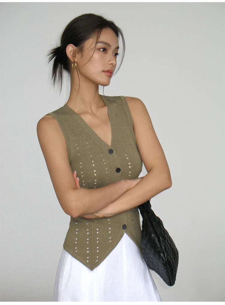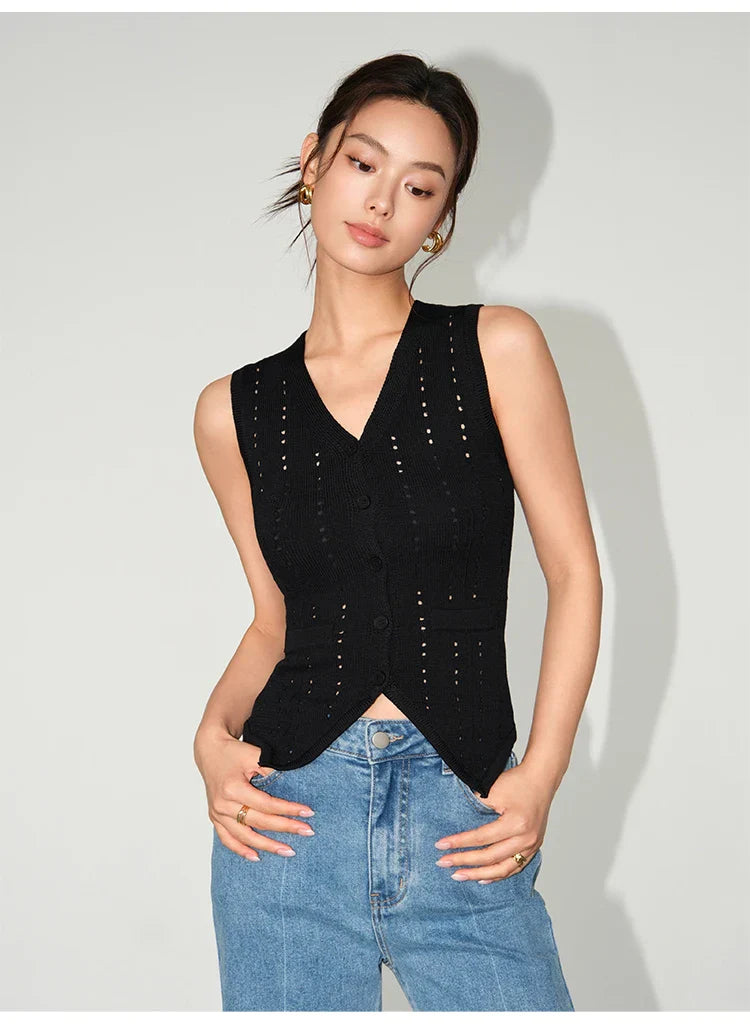 Denna väst har en elegant V-ringning och är tillverkad av en blandning av polyester och bomull, vilket ger en andningsaktiv känsla. Den är idealisk för att korsa dina gränser med stil, oavsett om du är på gymmet eller ute på stan.