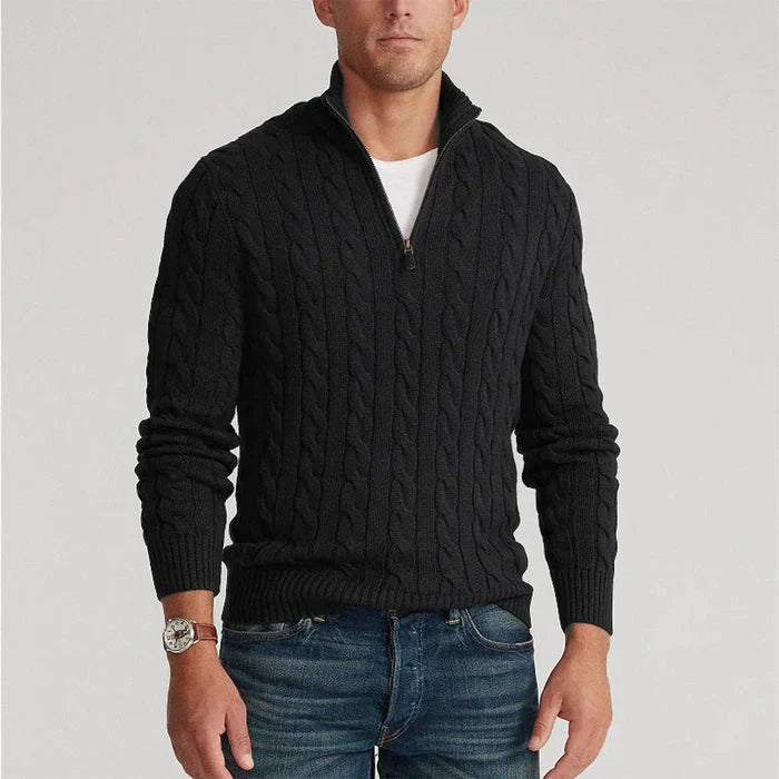 Herr Zip Tröja Flätad Design för Kallt Väder