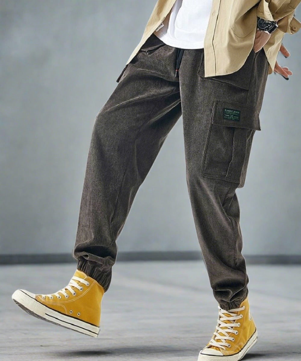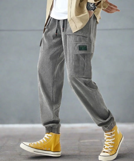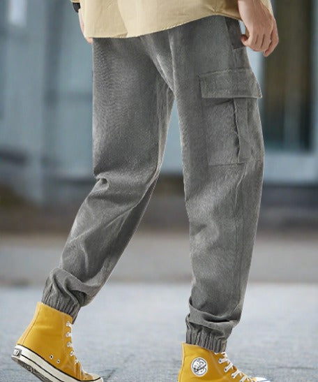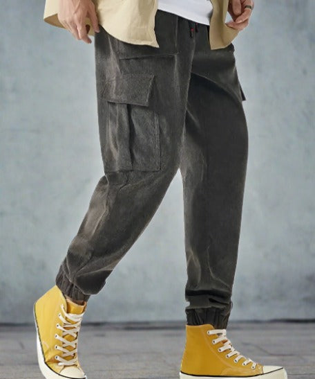 Herrar Bred Lastbyxor Hög Midja 100% Bomull med Sidofickor