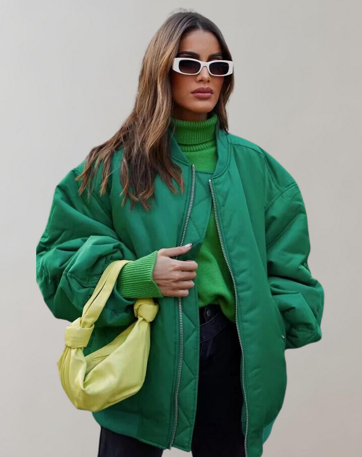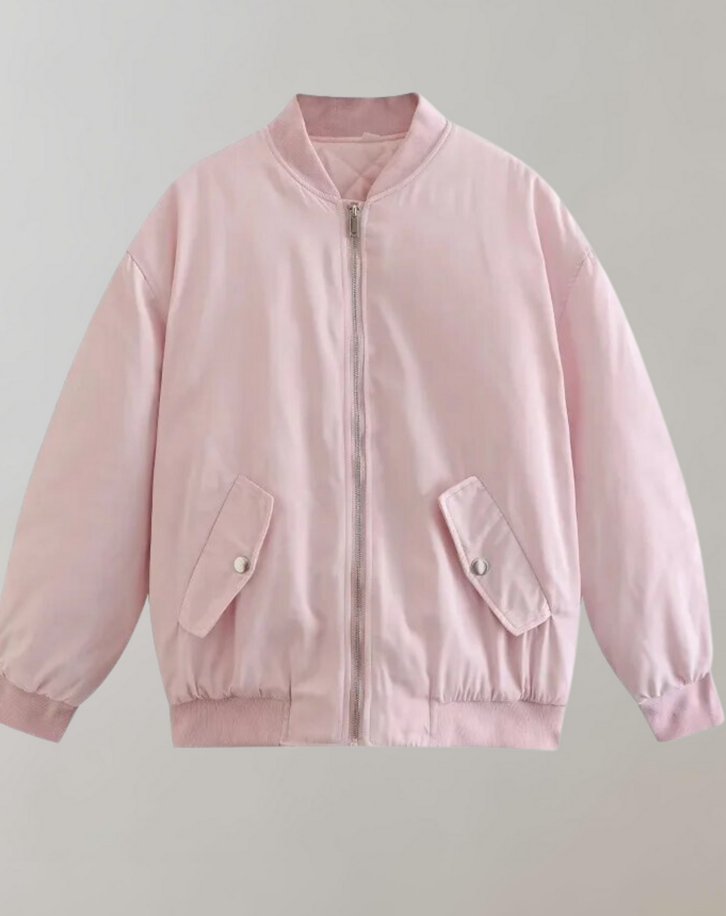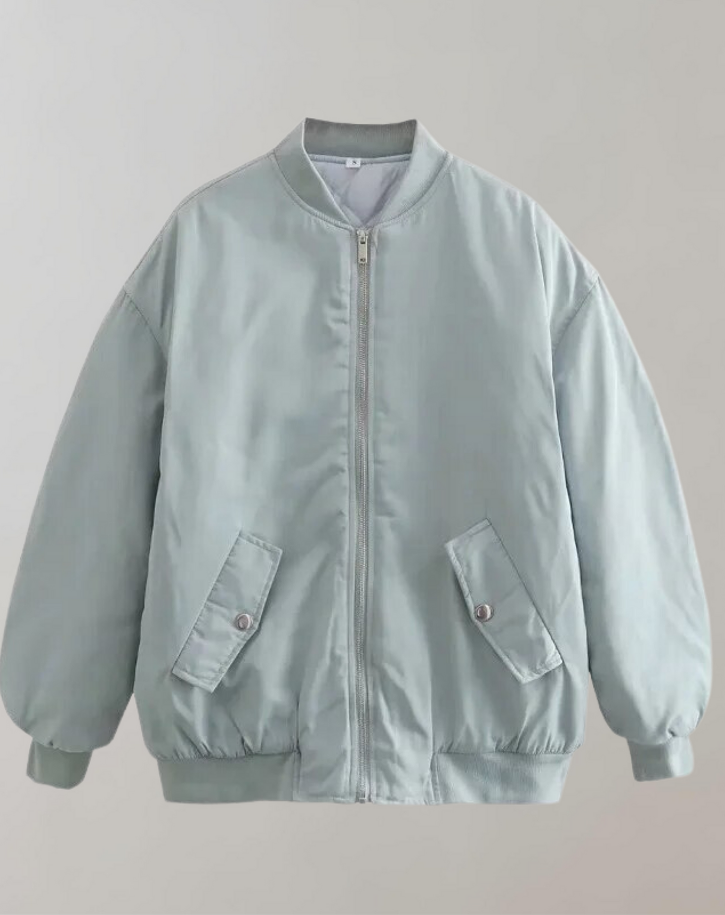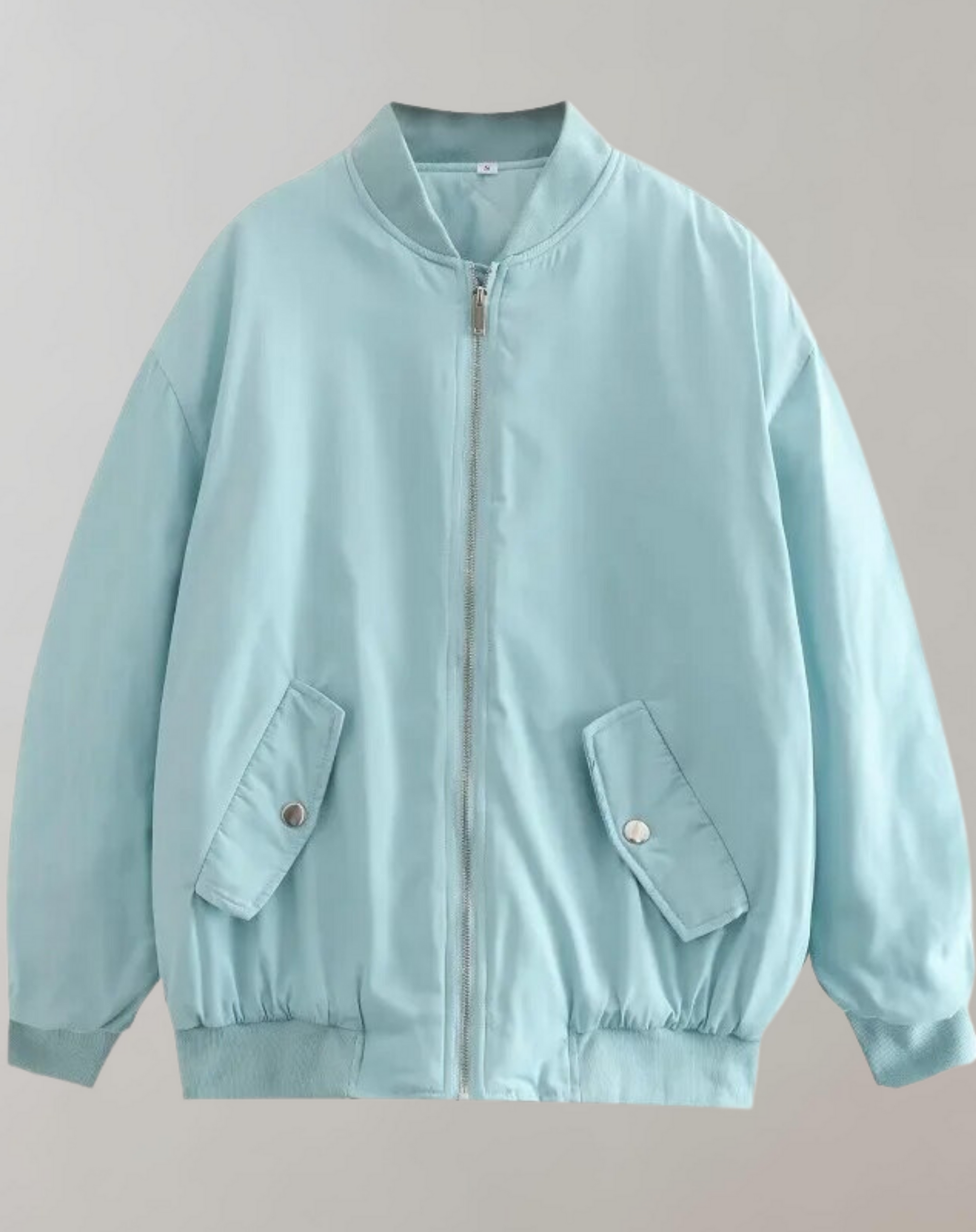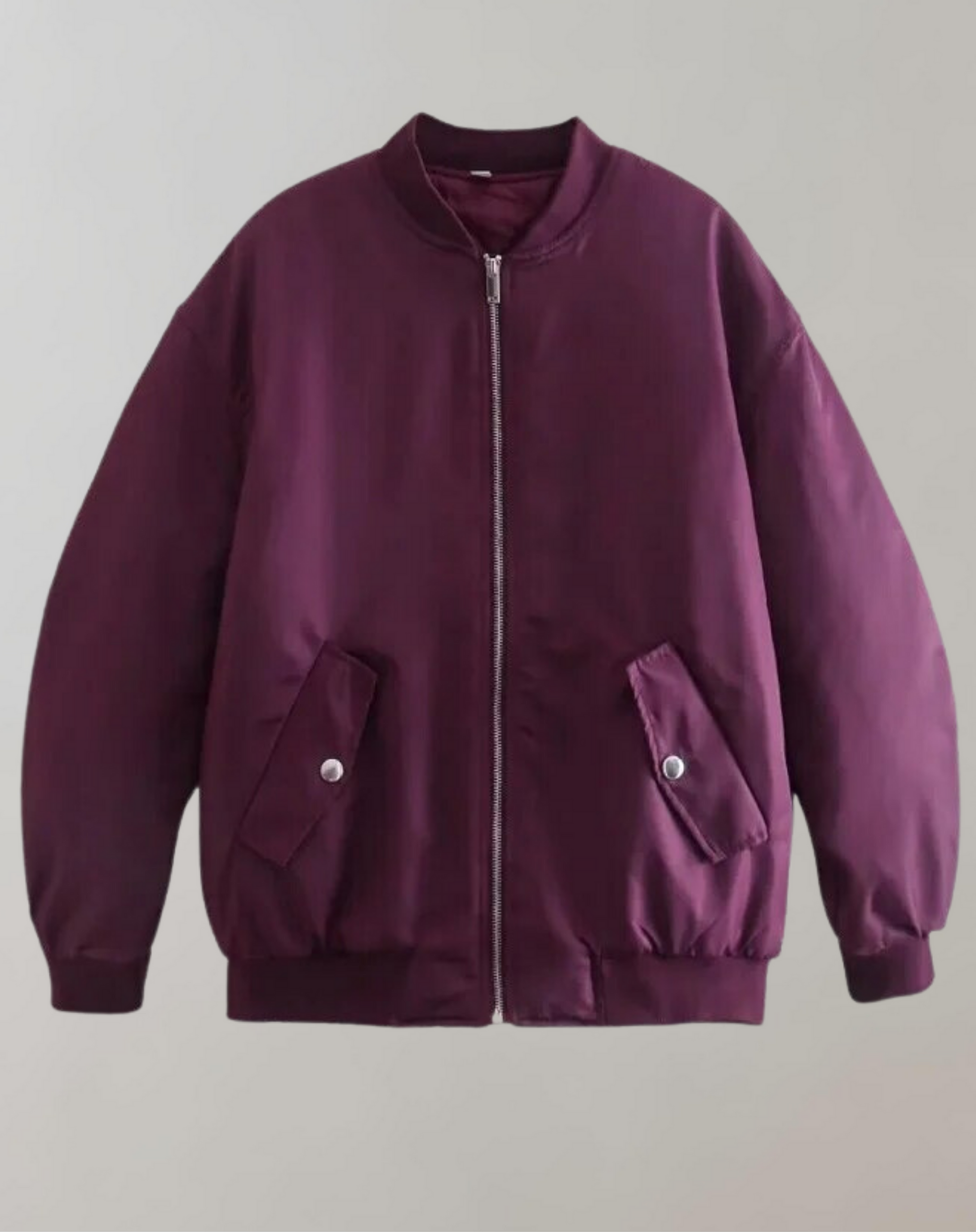 Denna bomberjacka är utformad med flera högkvalitativa dragkedjor som inte bara ger en stilren look utan också erbjuder gott om förvaringsutrymme för dina viktigaste tillhörigheter. Ståkragen ger extra värme och en elegant touch, vilket gör den idealisk för både kalla dagar och avslappnade tillfällen.