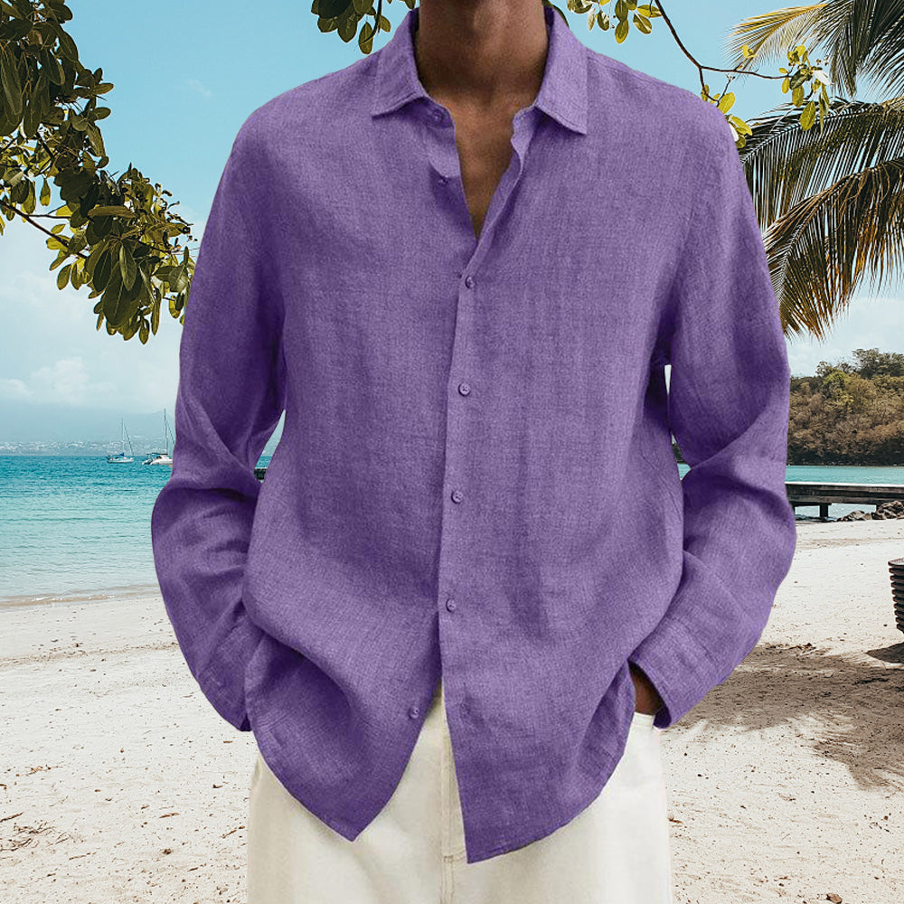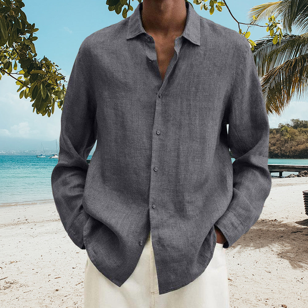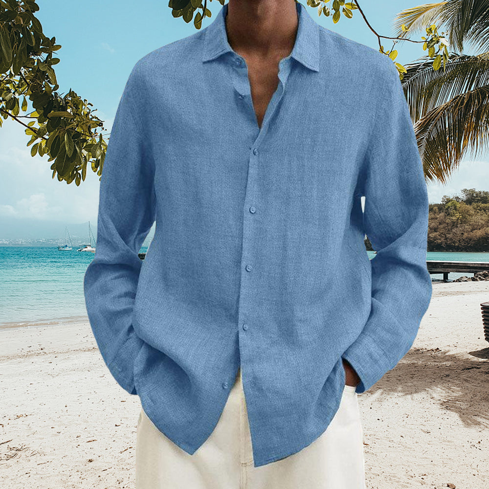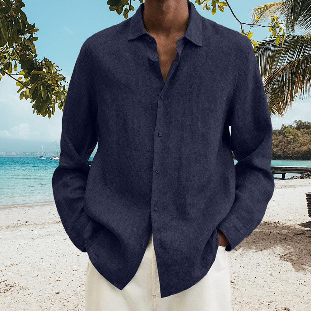 Långärmad Herrskjorta Avslappnad Bomull och Linne