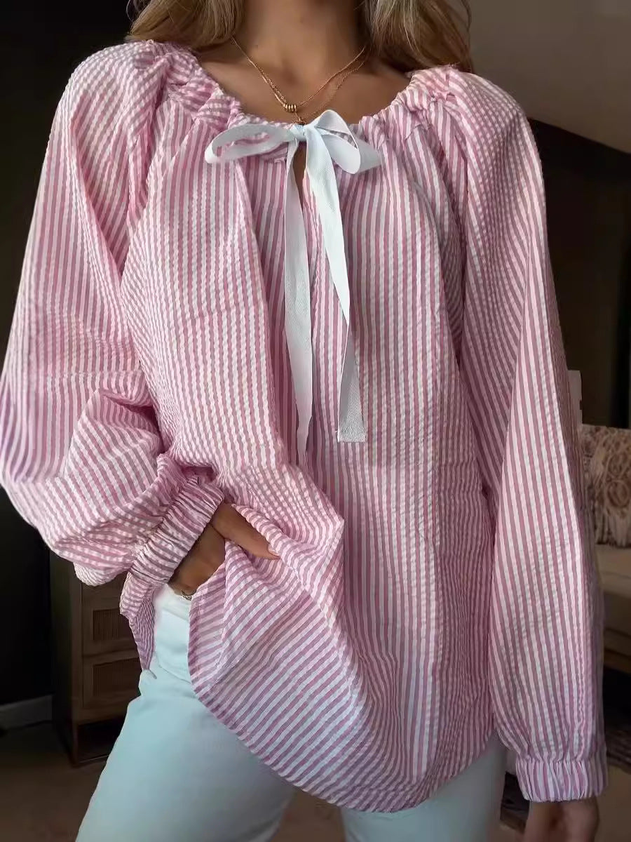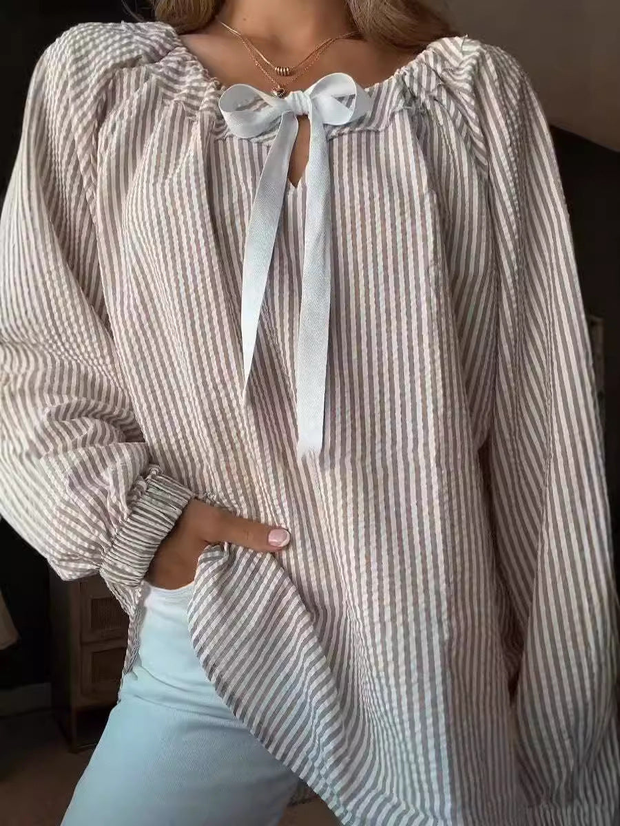 Skjortan har en unik randig design som ger en fräsch och livlig känsla. Den är idealisk för både vardagliga och mer formella tillfällen, vilket gör den till ett mångsidigt tillskott i din garderob.