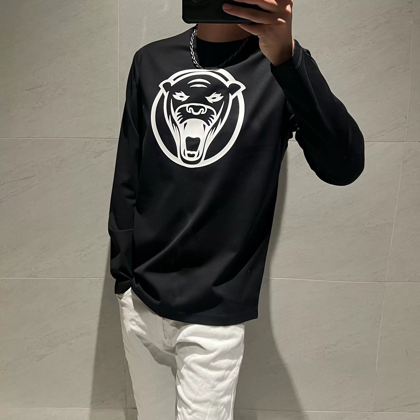 Skjortan har en rund hals och långa ärmar, vilket gör den idealisk för både vardagligt bruk och mer avslappnade tillställningar. Det grafiska trycket med djurmotiv ger en unik touch som verkligen står ut.
