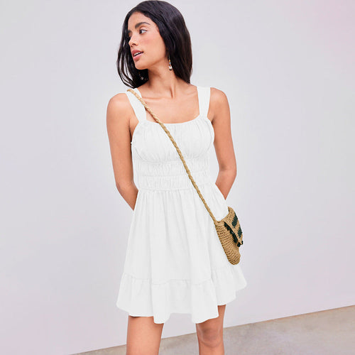 Denna A-Line kjol är perfekt för att skapa en stilren och elegant look. Med sin midi-längd och fyrkantiga halsringning ger den en modern känsla som gör att du känner dig självsäker och bekväm.
