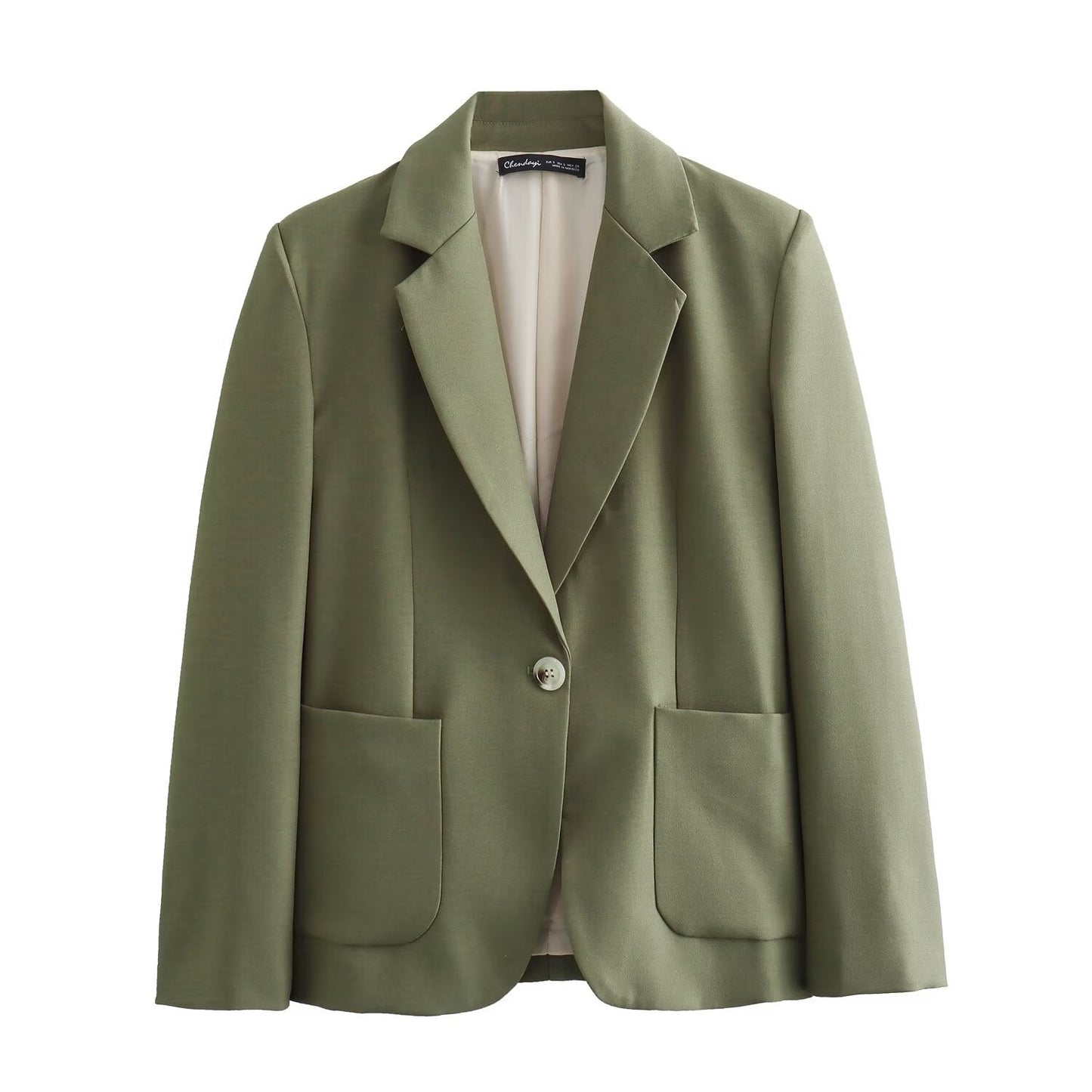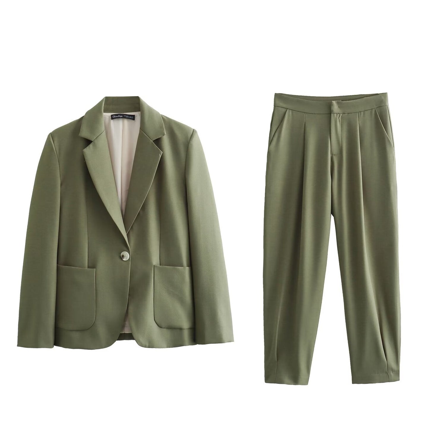 Kostym Set Dam Monokrom med Långa Byxor och En Knapper