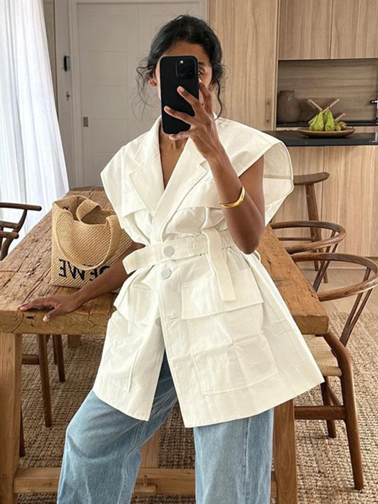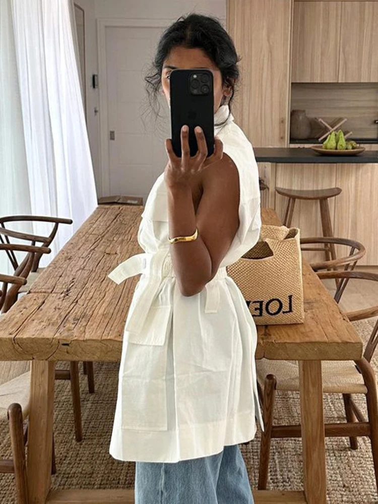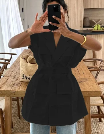 Uppgradera din garderob med vår ärmlösa skjorta, ett måste för varje stilmedveten kvinna. Denna skjorta erbjuder en perfekt kombination av komfort och stil, vilket gör att du känner dig självsäker och elegant.
