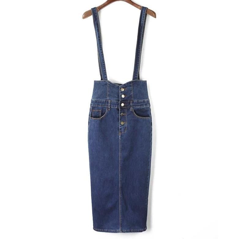 Denna kjol har en medellång längd och är tillverkad av slitstark denim. Med knapplåsning, bälteslingor och praktiska fickor, är den både funktionell och stilren. Slitsen på baksidan ger extra rörelsefrihet och en modern touch.