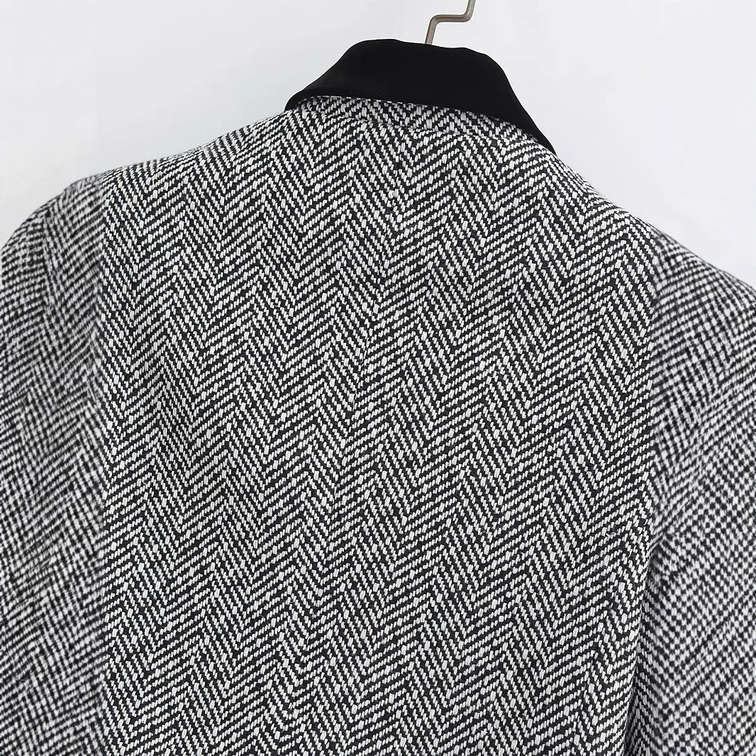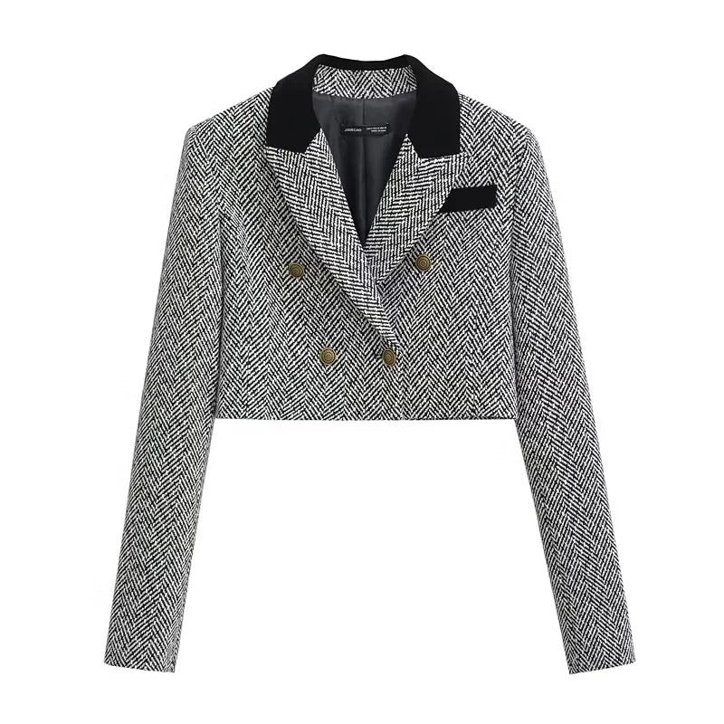 Kvinna Korta Blazerjacka Strukturerat Tyg