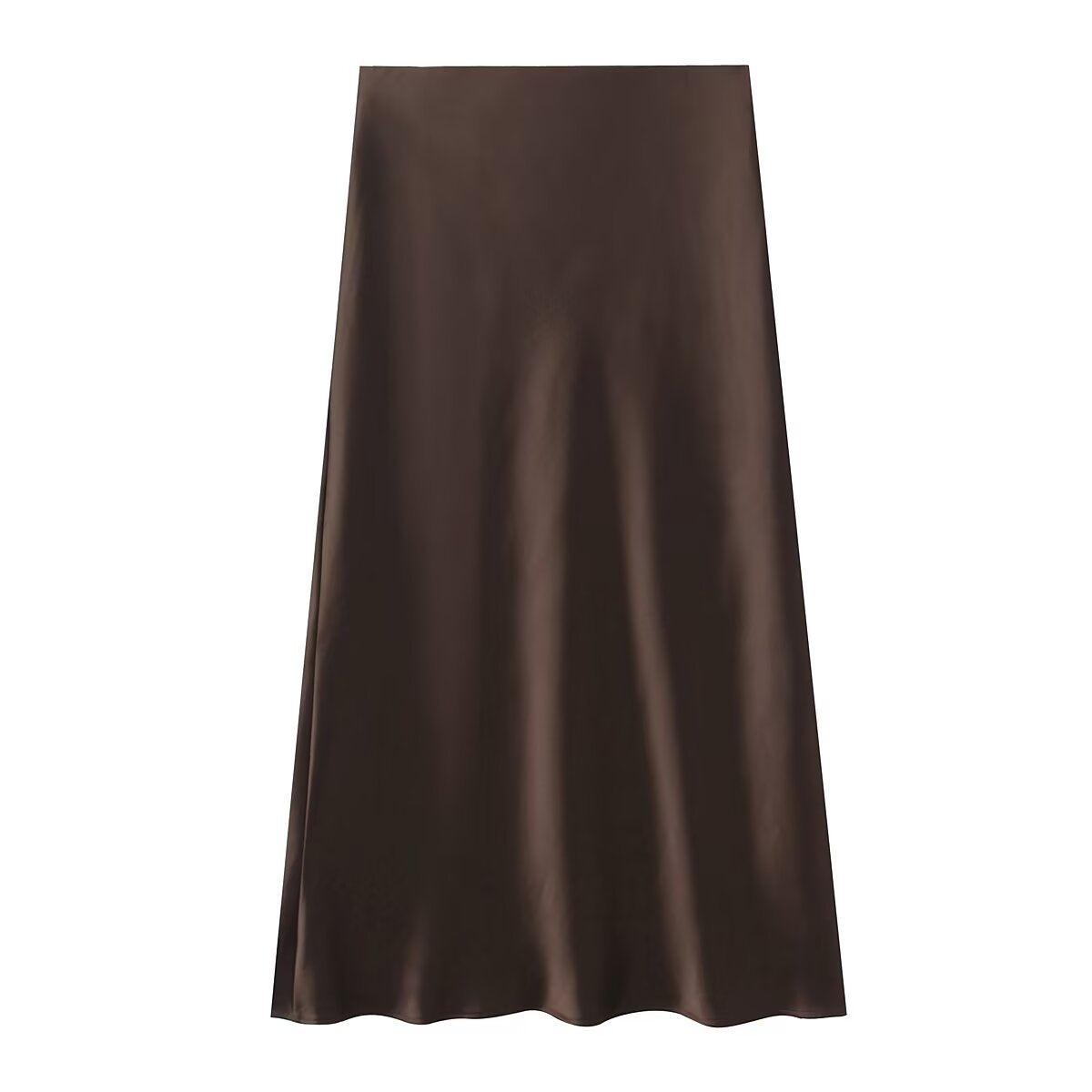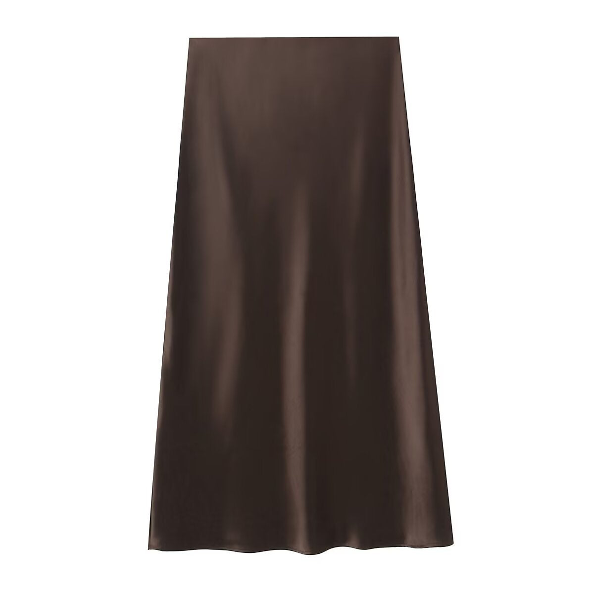 Kvinna Midi Kjol Hög Midja Satin Mångfärgad
