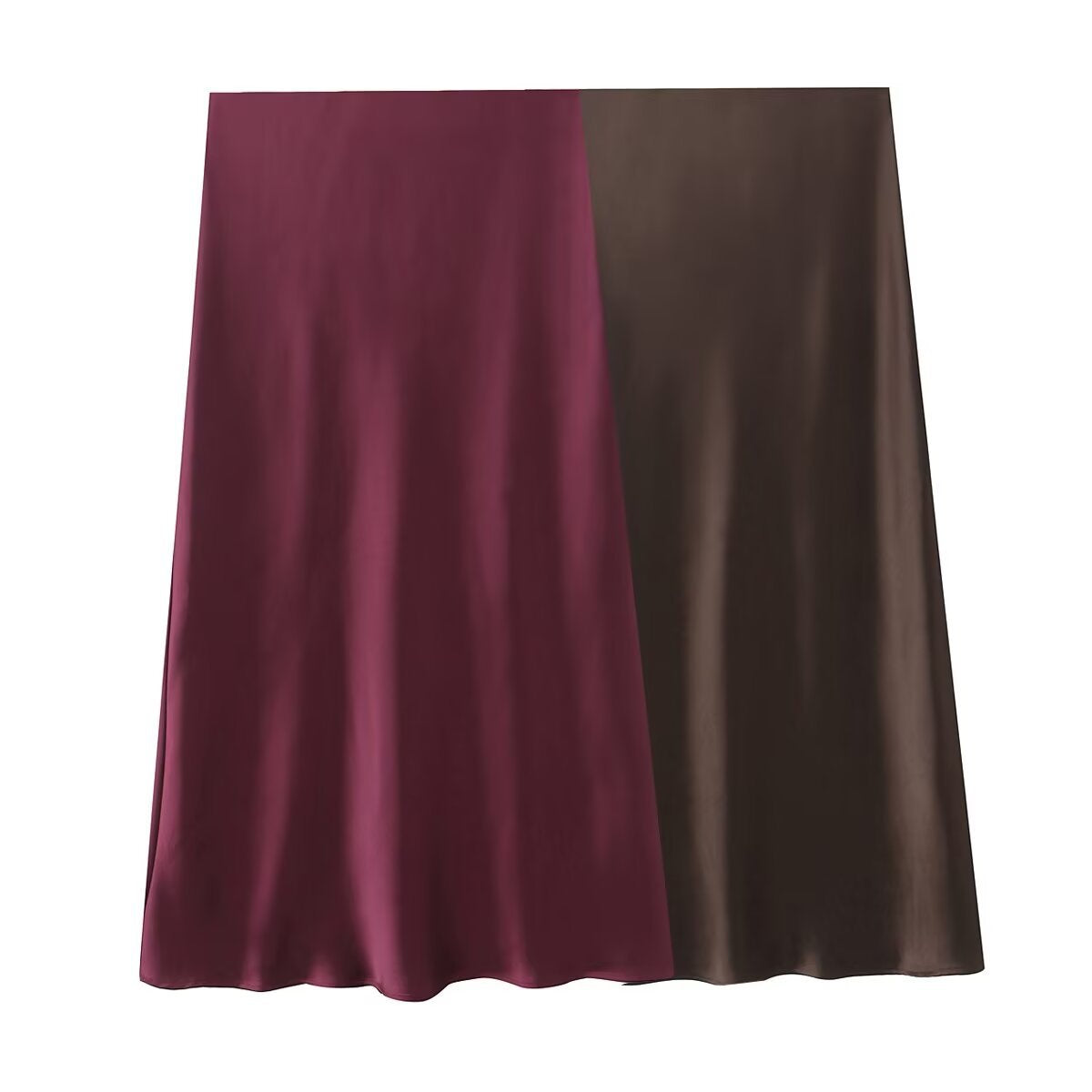 Kjolen har en hög midja som framhäver din figur och ger en smickrande silhuett. Den mångfärgade satinmaterialet ger en lyxig känsla och gör den idealisk för både vardag och festliga tillfällen.