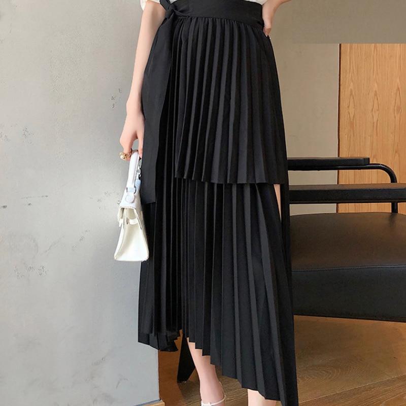Kjolen har en unik ojämn skärning som ger en modern känsla, och det elastiska midjebandet säkerställer en perfekt passform. Den är idealisk för både vardagliga och festliga tillfällen.
