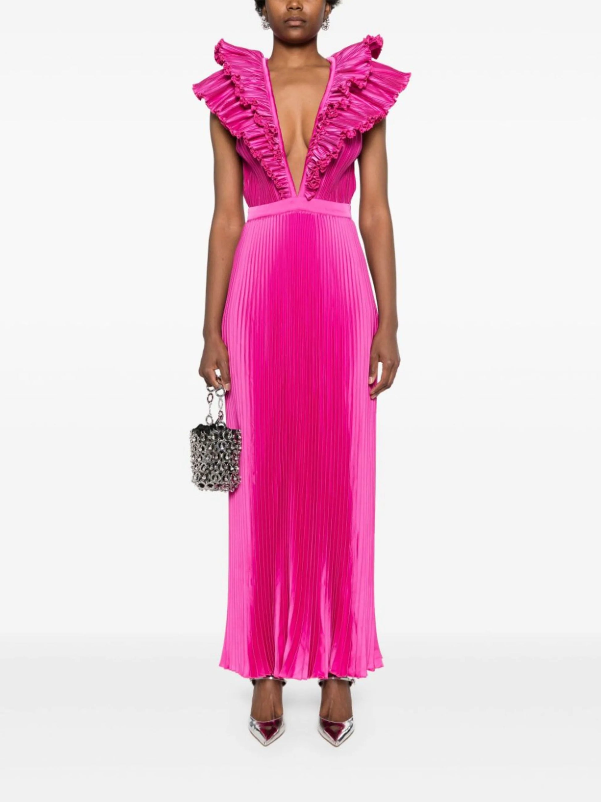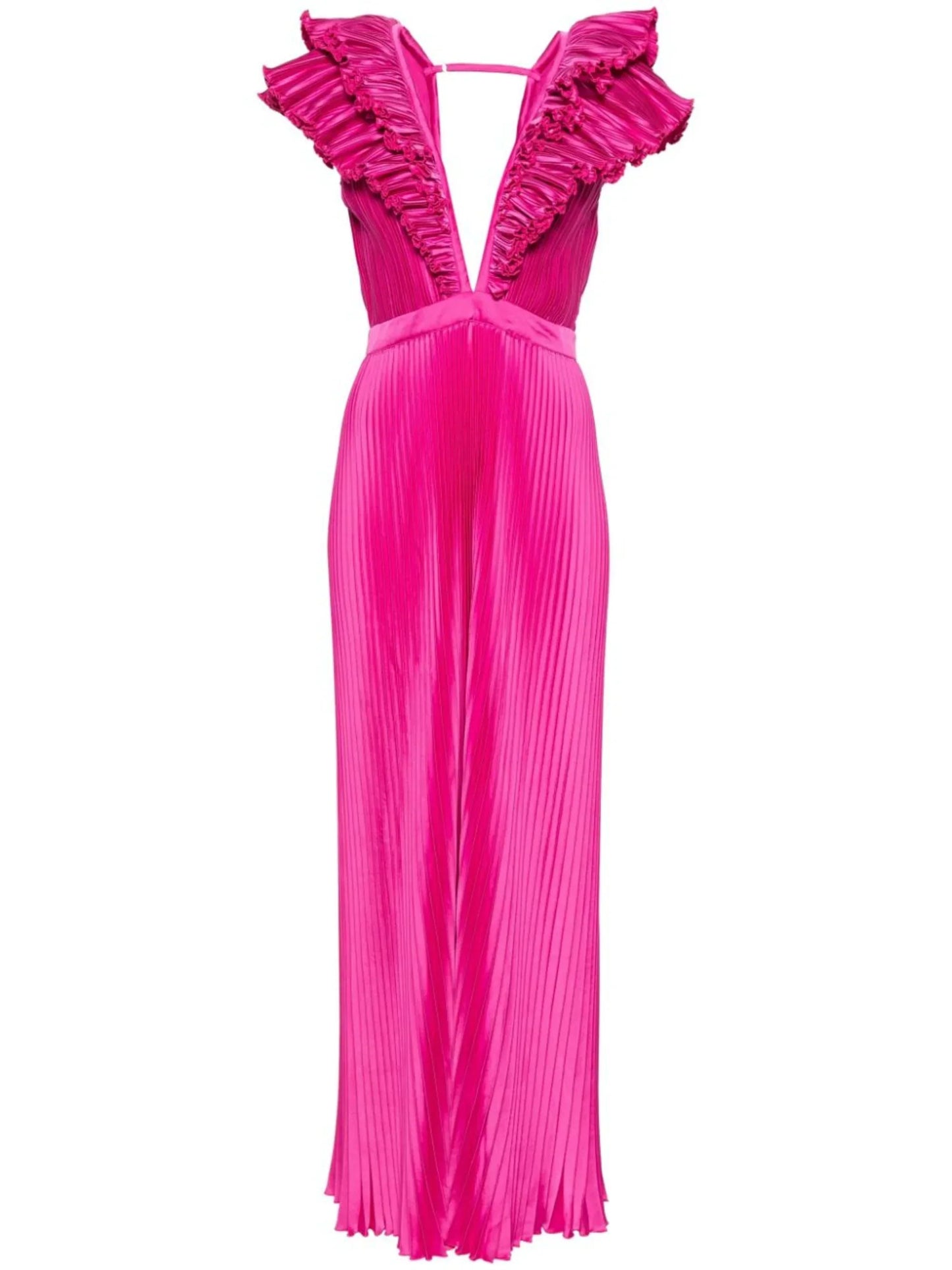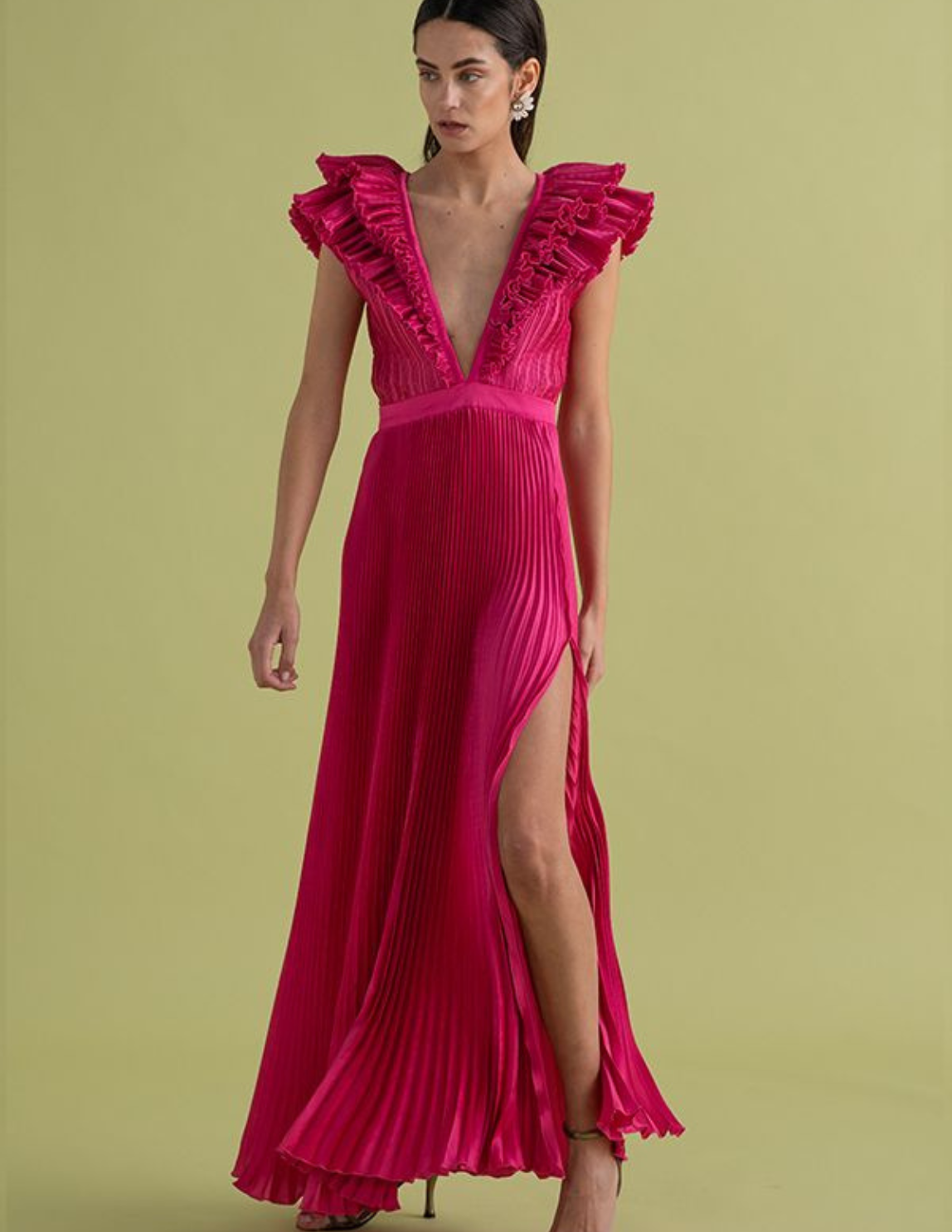 Den eleganta ruffle-klänningen är en mästerlig skapelse som kombinerar klassisk charm med modern stil. Med sina vackra ruffles och livliga röda ton blir den en oemotståndlig höjdpunkt i varje garderob.