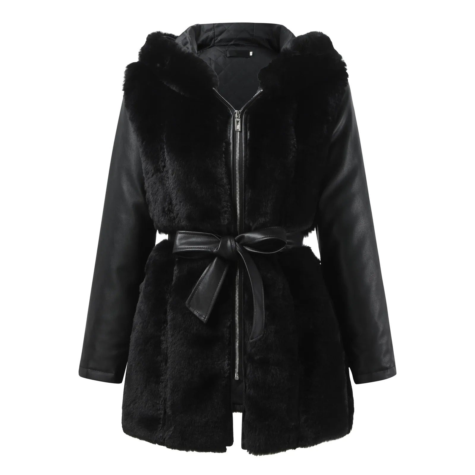 Kvinna Vegan Skinnjacka med Syntetisk Pälskrage