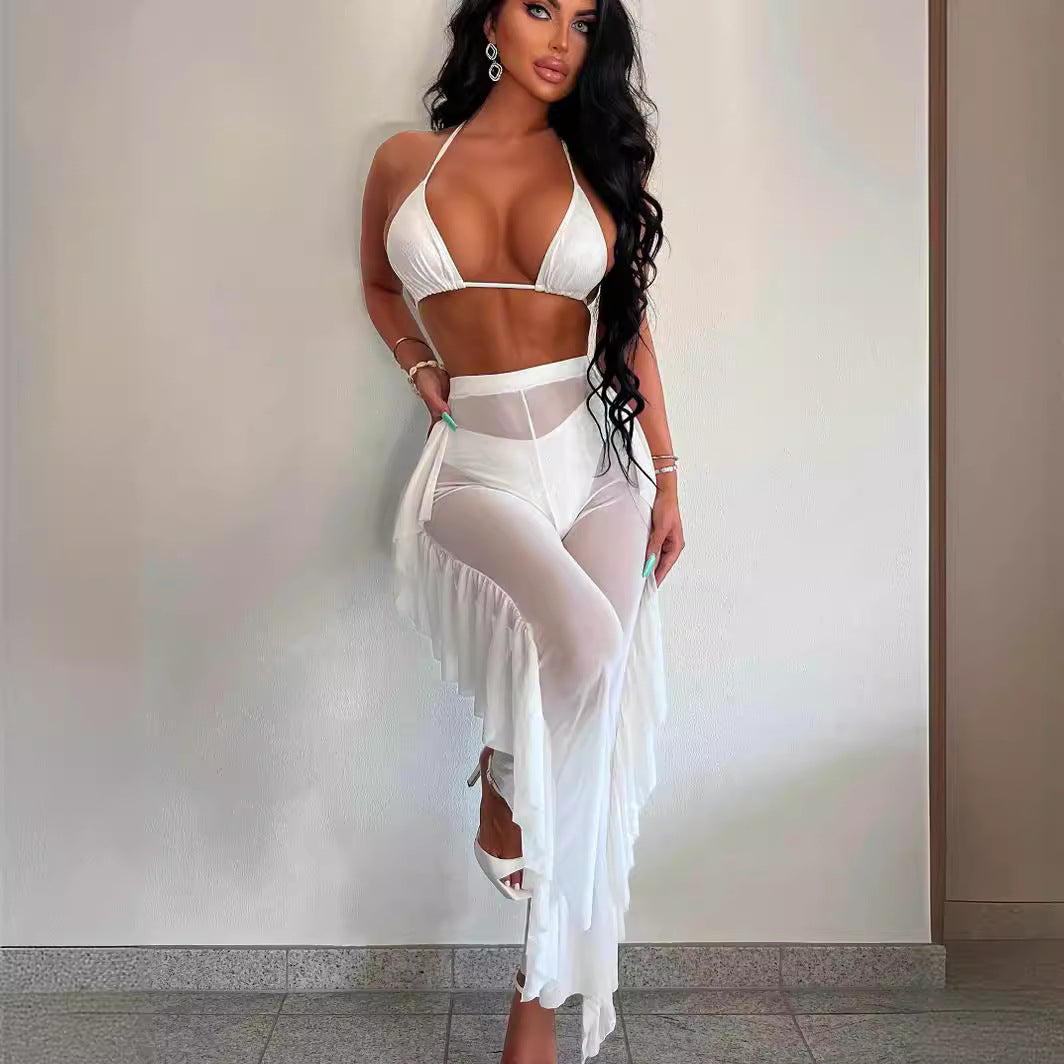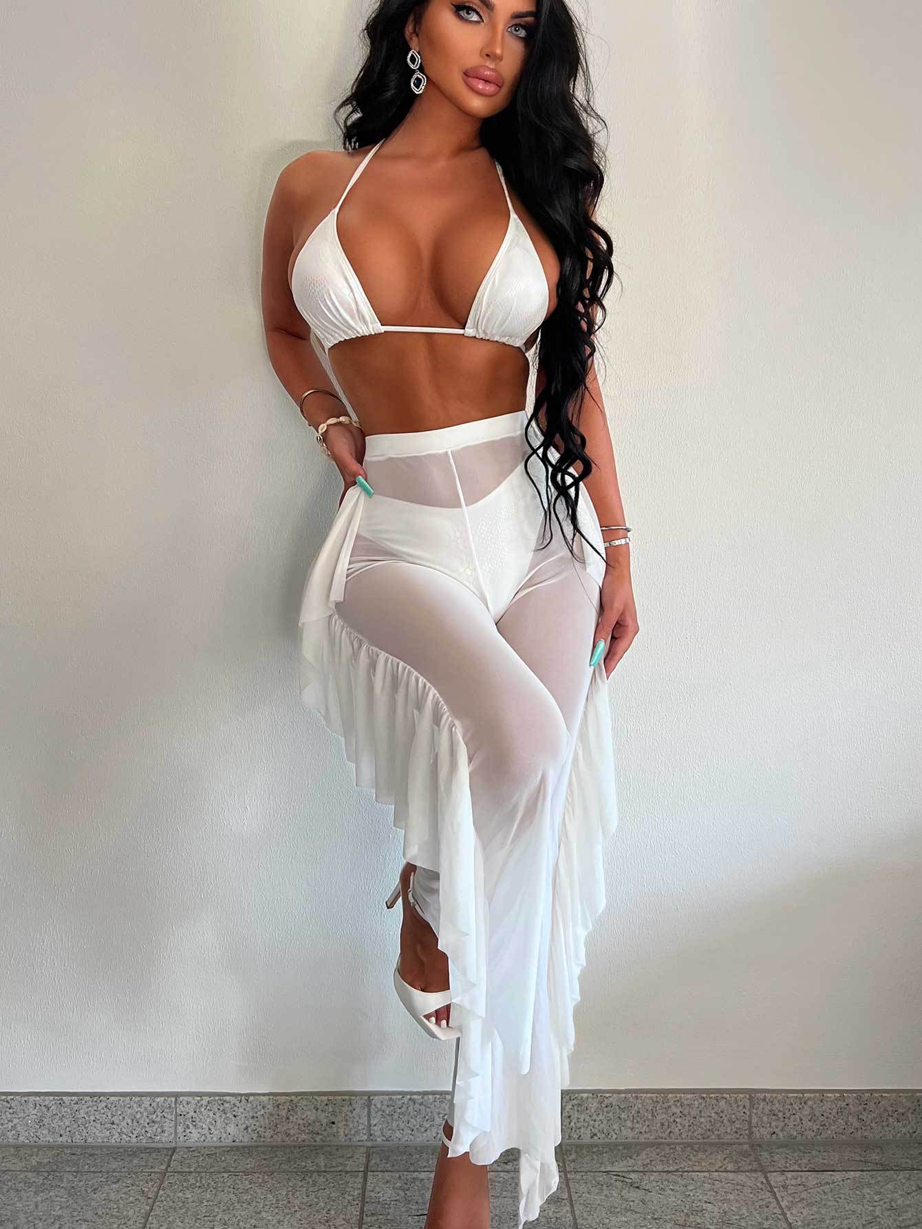 Kvinnlig Strandtunika Transparent med Fransar Lätt Material