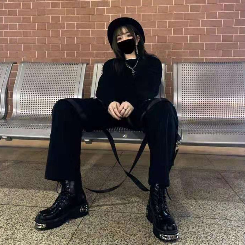 Upplev en unik stil med dessa punkinspirerade ankelstövlar, designade för den moderna kvinnan. Med robust konstruktion och metalliska accenter, kommer dessa stövlar att ge en känsla av självsäkerhet och stil.