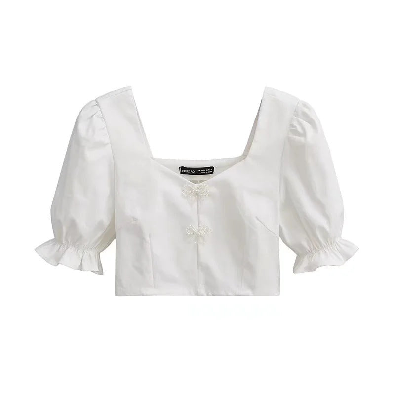 Den moderna fyrkantiga halsringningen och de feminina puffhylsorna skapar en stilren look som passar både till festliga tillfällen och avslappnade dagar. Toppens design gör den lätt att styla med olika plagg, vilket ger dig oändliga möjligheter att uttrycka din personliga stil.