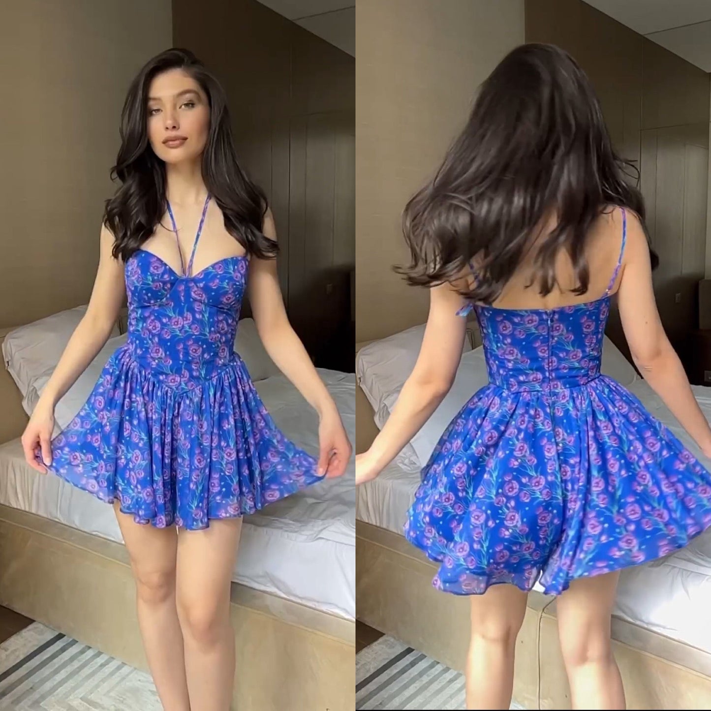 Med sin blommiga design ger klänningen en fräsch och romantisk touch till din garderob. Den är idealisk för både avslappnade promenader och mer festliga evenemang, vilket gör den till ett mångsidigt val för alla tillfällen.