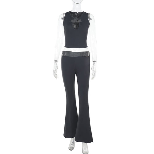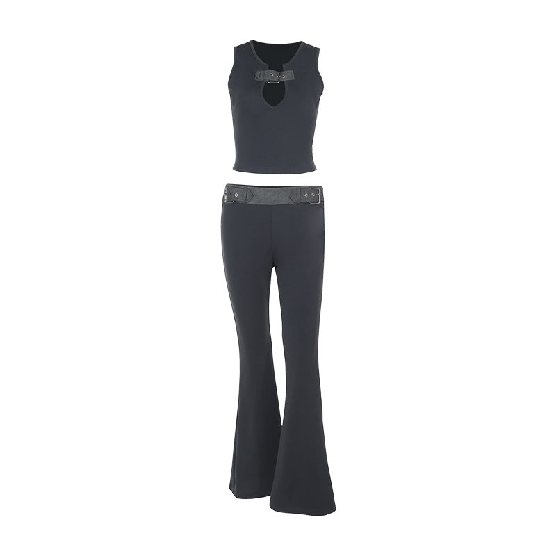Upplev en perfekt kombination av stil och komfort med denna eleganta uppsättning. Den figur-kramande toppen och de blossade byxorna ger dig en smickrande silhuett som passar för alla tillfällen.