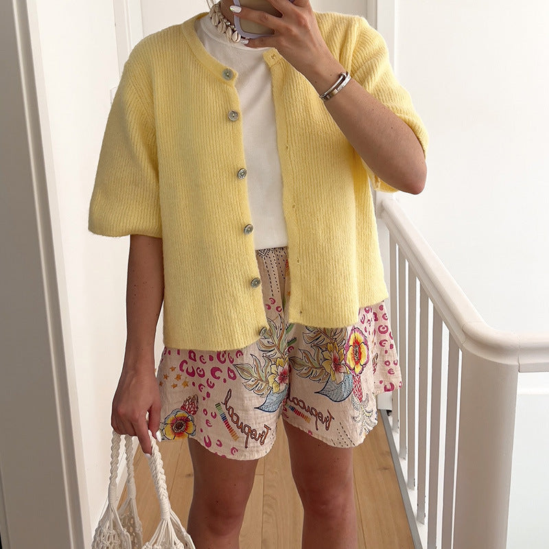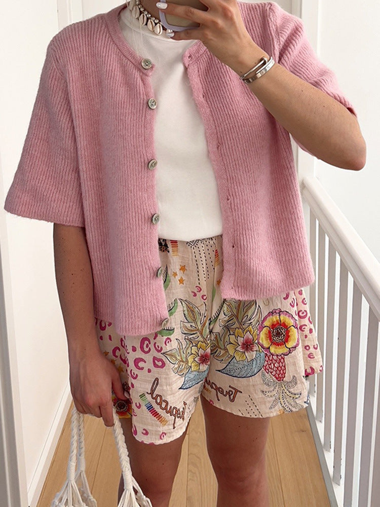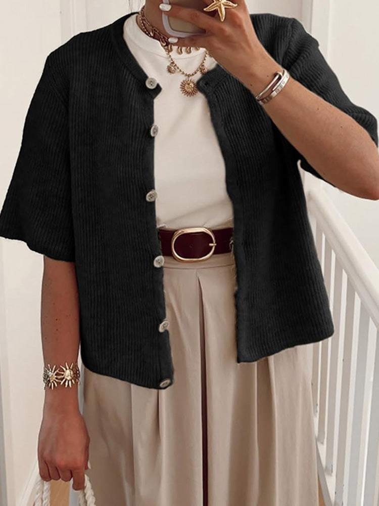 Kvinnor Kortärmad Cardigan Mjuk Bomullsblandning