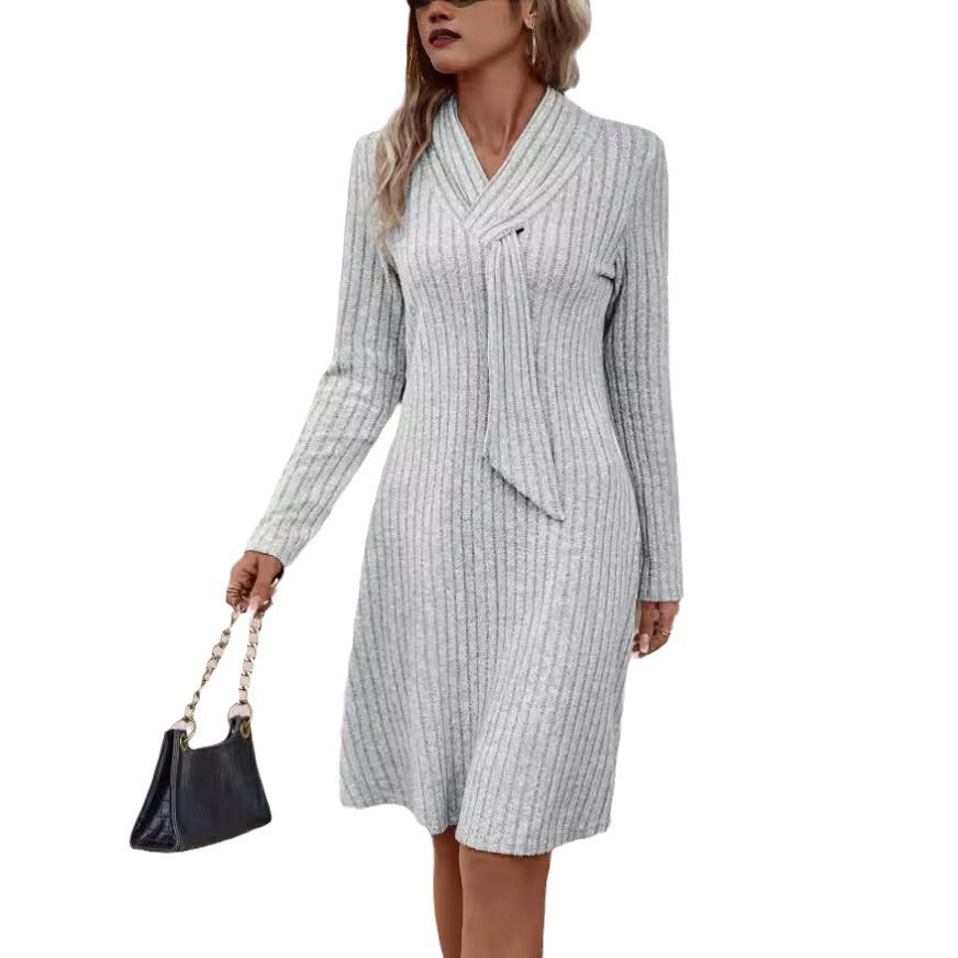 Kvinnor Midi Klänning Långärmad Spandex Polyester