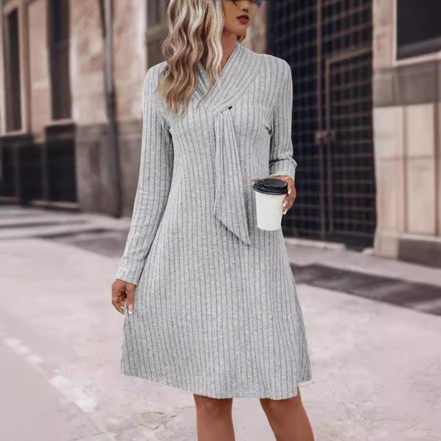 Denna klänning har en tidlös design med långa ärmar och en midi-längd som ger en smickrande silhuett. Den monokroma färgen gör den lätt att styla och passar utmärkt för olika tillfällen, från vardag till fest.